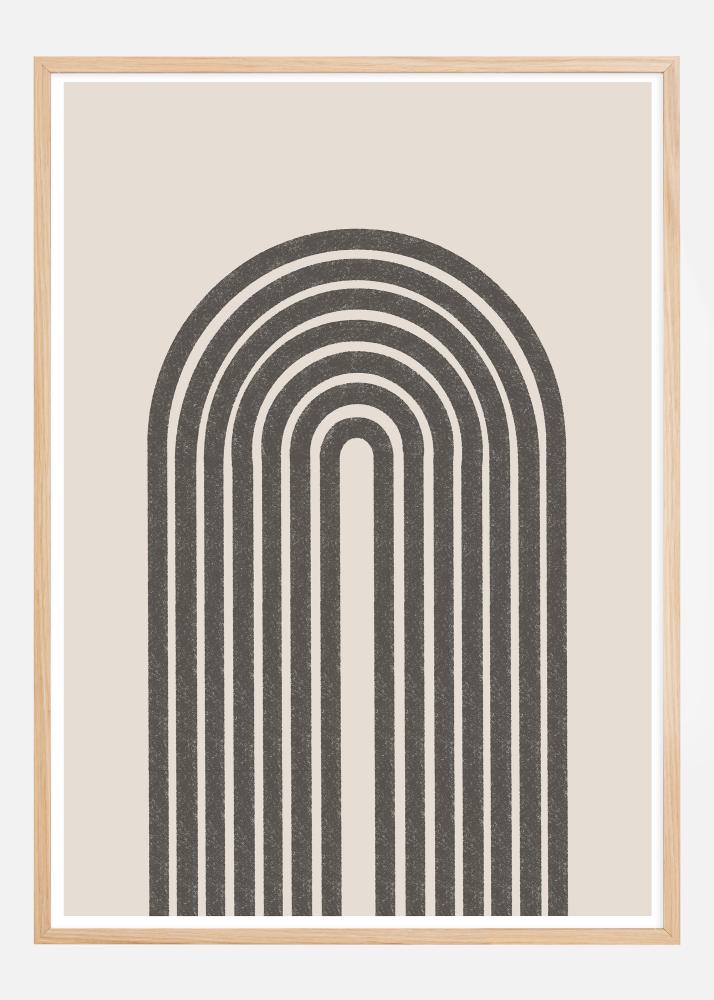Šis minimalistinis plakatas pabrėžia harmoningą koncentrinių lankų kompoziciją švelnia geometrine forma, kuri sukuria ramybės ir pusiausvyros pojūtį. Pasikartojančios linijos tamsiame atspalvyje ant neutralios fono sukuria rafinuotą ir šiuolaikišką dizainą, puikiai tinkančią modernios interjero mylėtojams. Spalvos yra turtingas juodos ir balintos baltos derinys, todėl šį spaudinį lengva priderinti prie įvairių interjero stilių ir spalvų schemų.