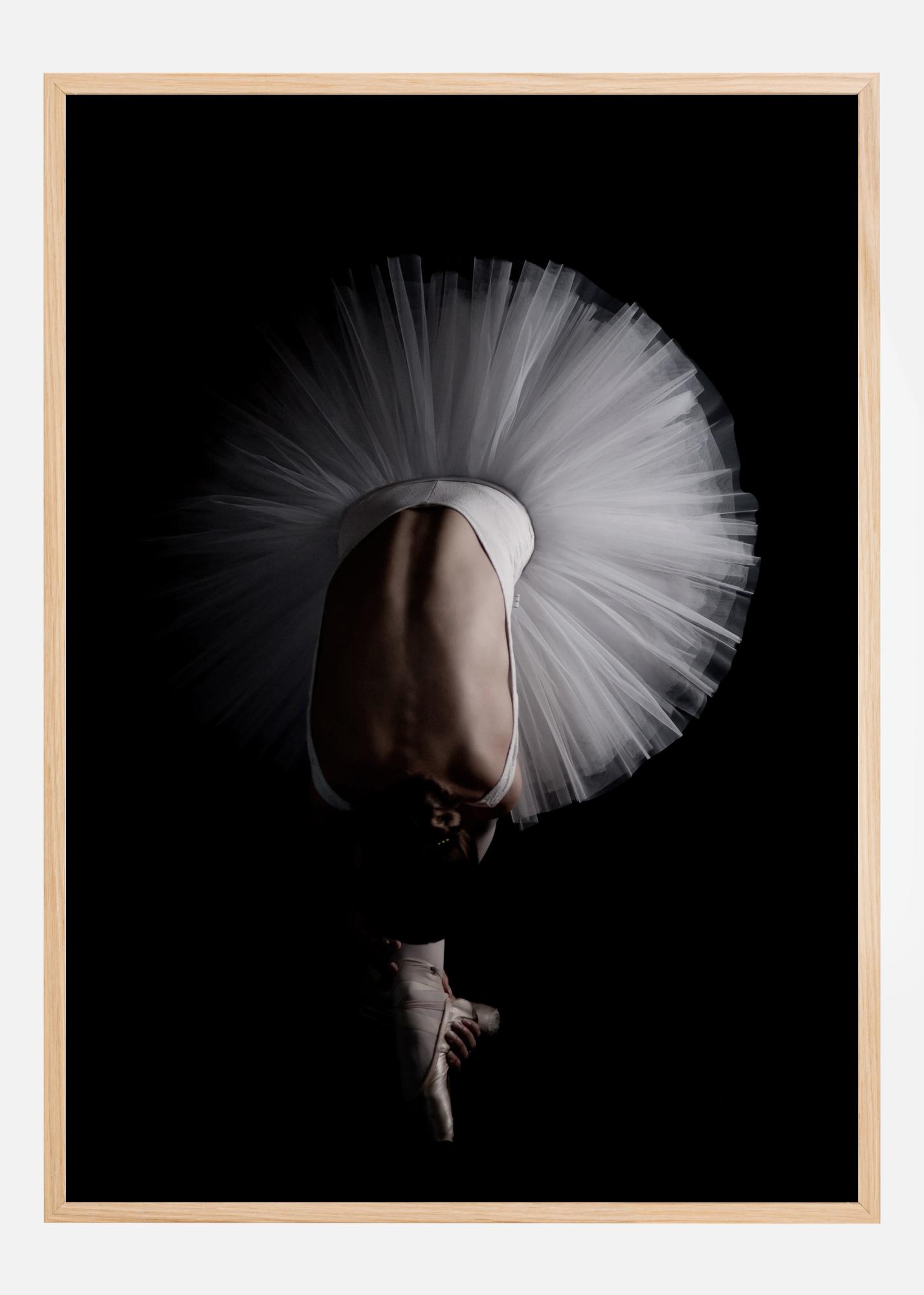 Įspūdingas oro vaizdo plakatas su baleto šokėja, lenkiančia į priekį siekti savo batelių. Juodas fonas suteikia baltam baleto sijonui švytėjimą aplink ją ryškioje apskritime. Stiprios nugaros linijos nukreipia akį į elegantiškai ištemptus pėdos pirštus. Elegancija ir drama susilieja šioje unikalioje nuotraukoje.