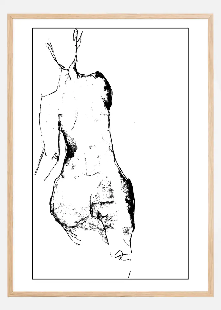 Įspūdinga figūratyros plakatas su moters nugara. Piešta rašalu, šiame brėžinyje yra sklandumo, kuris prisideda prie įspūdingų modelio kūno kreivių. Suderinkite šį su panašiu figūratyros plakatu, kad pasiektumėte geriausią efektą.