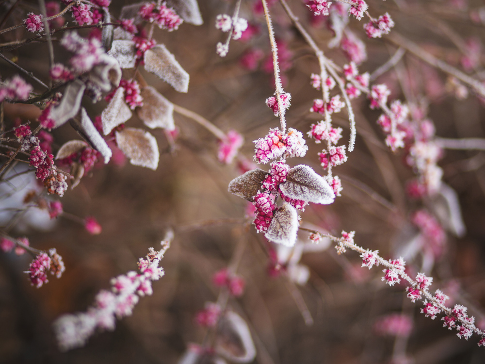 Nuotraukų menas su arti nufotografuotomis šalnos paliestomis rausvomis uogomis ir mažu aštrumo gyliu. Spaudinys su rožinėmis uogomis ir šokoladinio atspalvio fonu suteikia šiltą ir jaukią atmosferą. Didelio dydžio su elegantišku rėmu, paveikslas taps žvilgsniu svetainei arba pritvirtinkite mažesnį variantą prie plakatų koliažo kartu su kitais tos pačios spalvos plakatais.