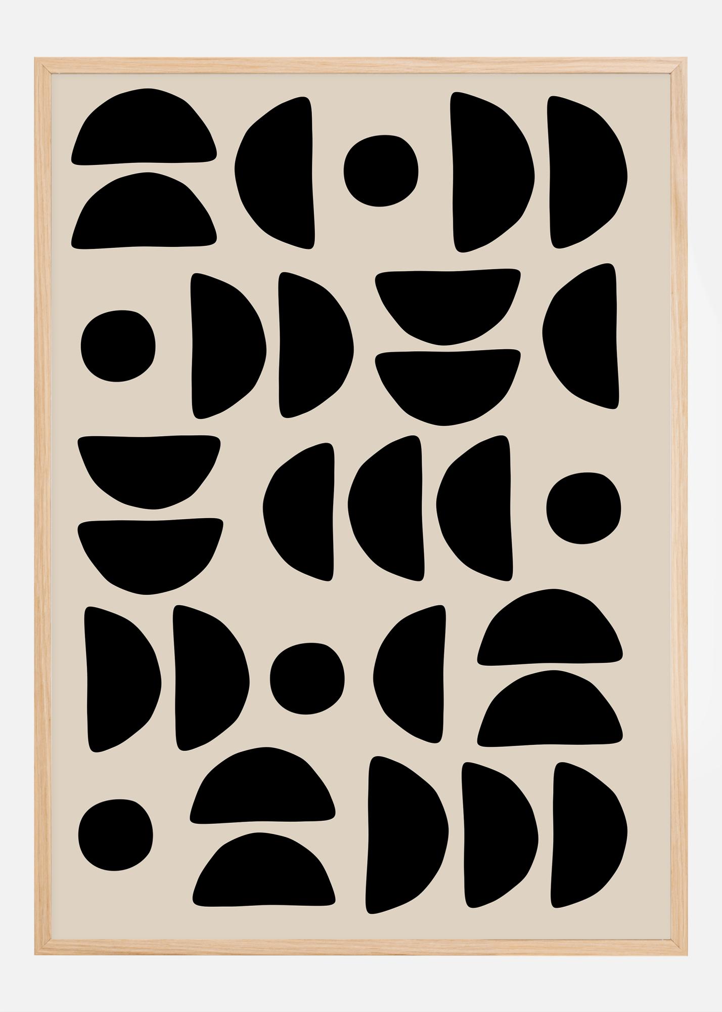 Šis meniškai sukurtas plakatas išsiskiria savo drąsiu geometrinių formų raštu juodoje spalvoje prieš smėlio spalvos foną. Abstraktus dizainas yra žaismingas ir ritmingas, sukuriantis vizualinę įtampą, kuri yra ir moderni, ir nesenstanti. Šis darbas gali būti suvokiamas kaip duoklė tiek organiniam pasauliui, tiek grafinio dizaino sudedamosioms dalims ir puikiai tinka tiems, kurie vertina meną su stipriomis, švariomis linijomis ir galingais kontrastais.