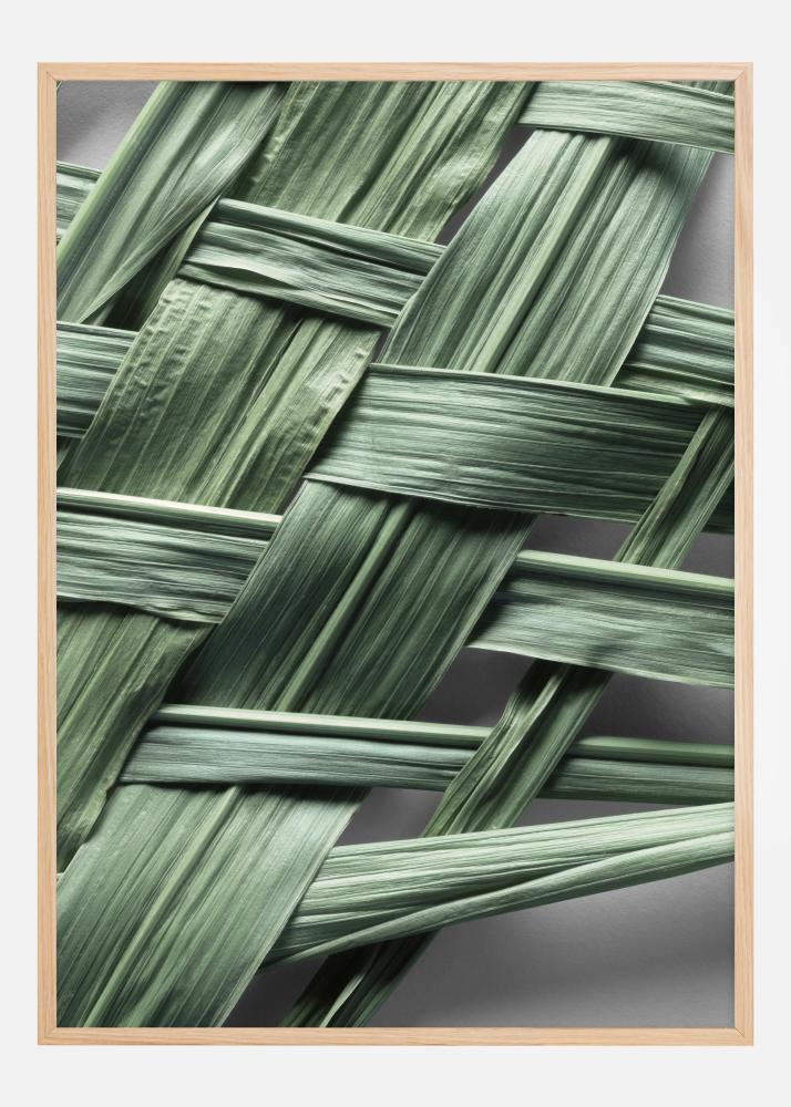Šis elegantiškas ir gamtos įkvėptas plakatas rodo detalių žalių lapų pynę, kurių linijos kerta viena kitą organizuotoje betvarkėje. Gyva žalia spalva ir skirtingos faktūros, esančios lapuose, sukuria raminantį ir gaivų įspūdį, kuris prisideda prie gamtos buvimo jausmo patalpoje.