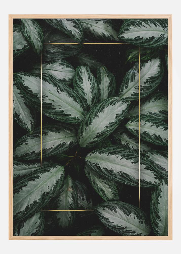 Su savo drąsiais ir ryškiais žalios spalvos atspalviais, šis plakatas suteikia gaivų gamtos elementą į jūsų namus ar biurą. Motyvas vaizduoja tankią lapų grupę, kurių detalus raštas įvairiuose žalios atspalviuose prieš tamsų foną pabrėžia jų natūralų grožį. Kiekvieno lapo gyvybingas tekstūrų kontrastas ir tamsios linijos sukuria vizualinę dinamiką, kuri ir raminanti, ir energizuojanti. Šis atspaudas yra gamtos paprasto, bet sudėtingo dizaino pagarba, ideali tiems, kurie nori įtraukti natūralius ir organinius elementus į savo interjerą.