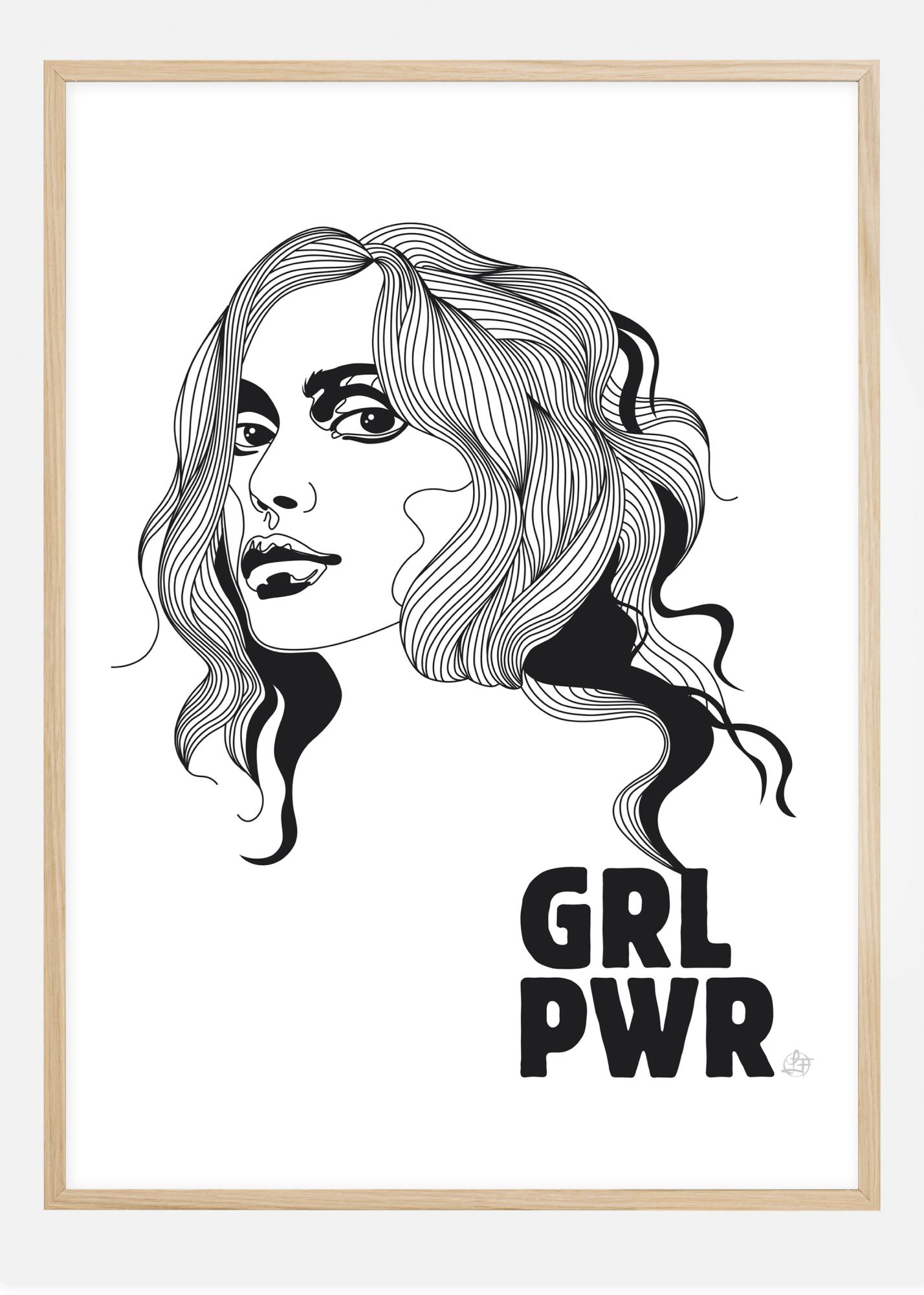 Plakatas su nuostabiai kupina laikysenos grafine iliustracija ir žinia Girl Power (grl pwr), sukurtas Lindos Forsberg. Paprastas ir stilingas teksinis plakatas su aiškia žinia.