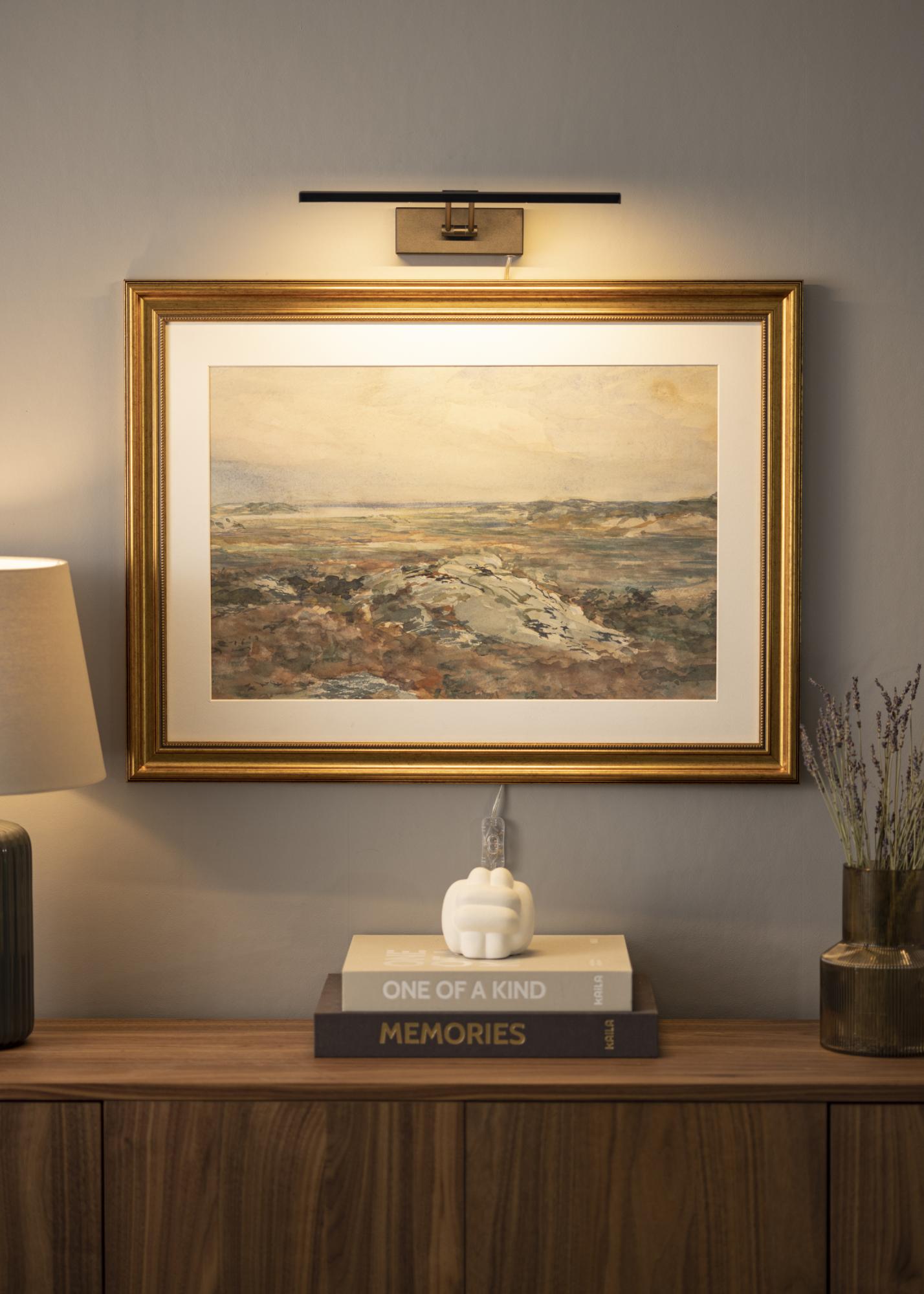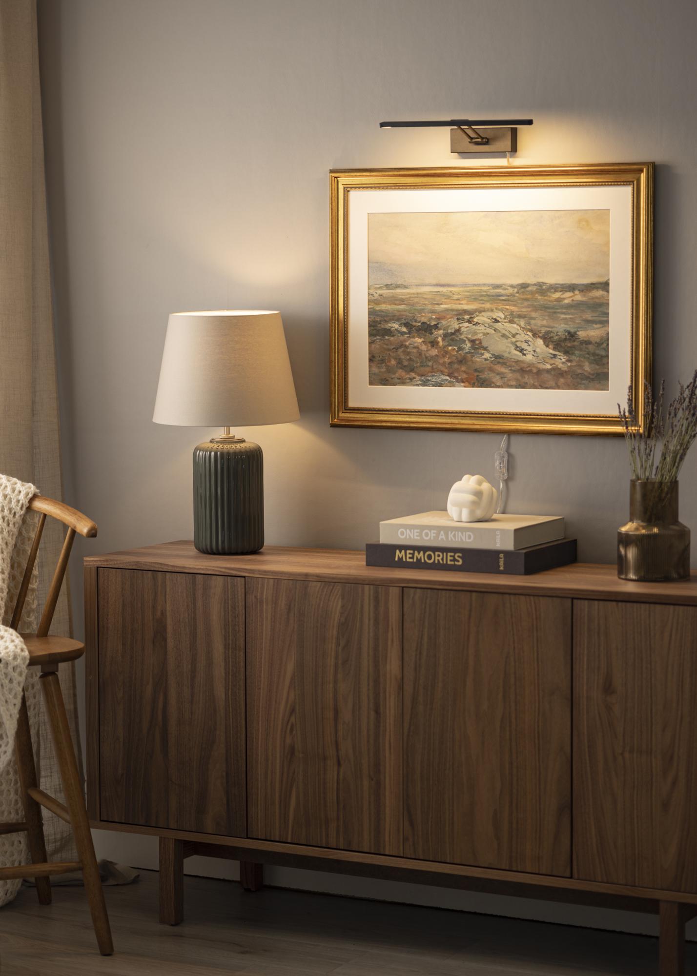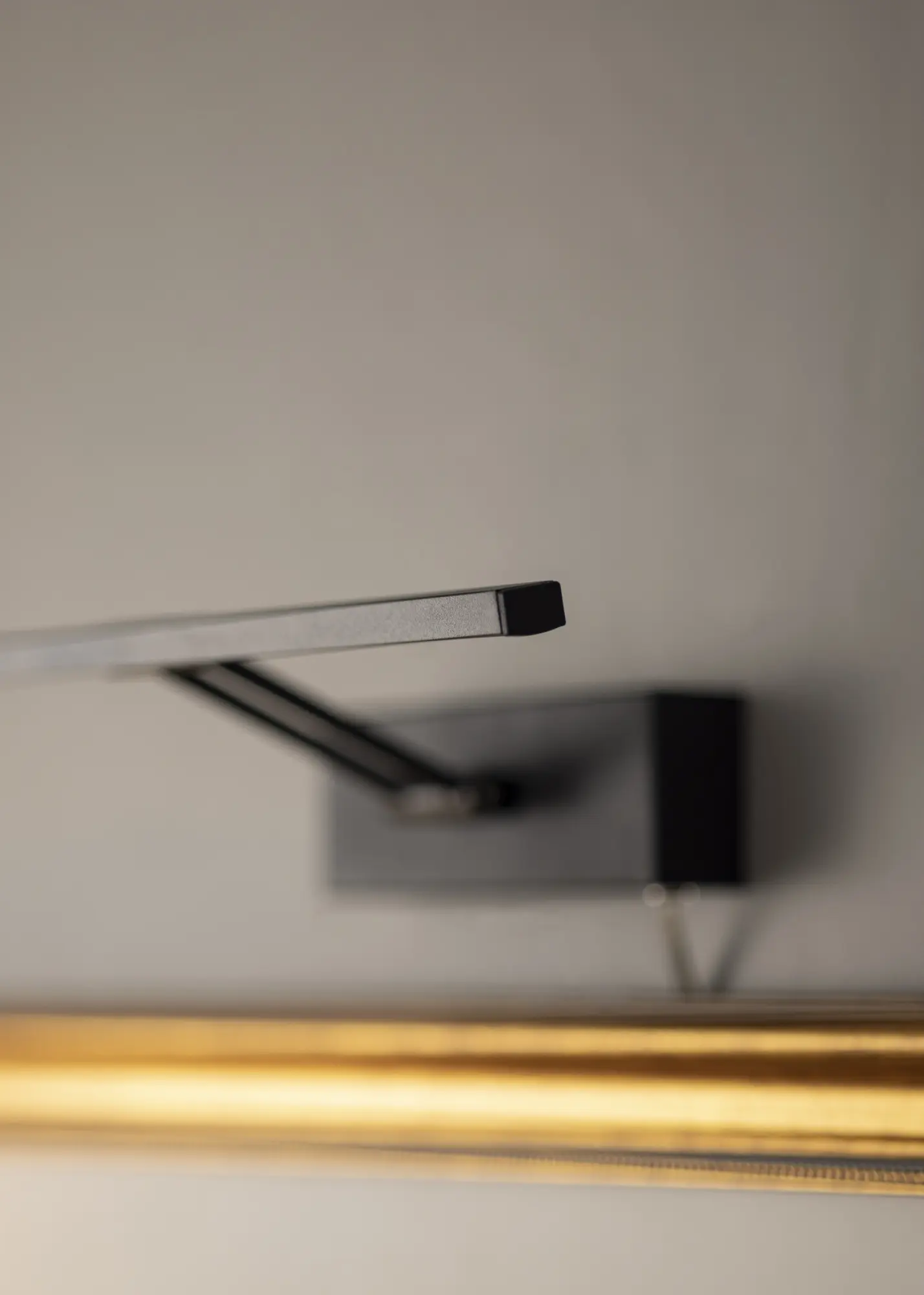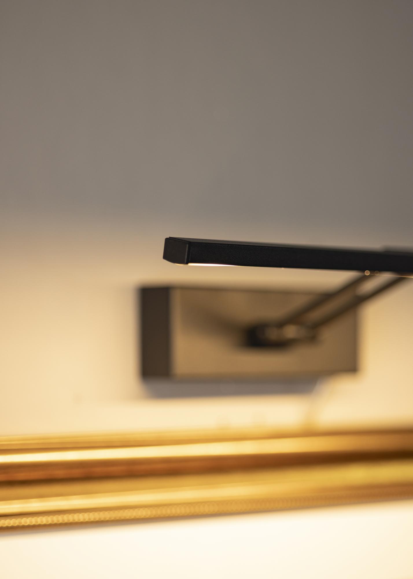 Paveikslų apšvietimas šiuolaikinio Švediško dizaino, kuris tinka paveikslams, kurių plotis yra 60-100 cm. Šviestuvas yra 5 cm aukščio ir 37 cm ilgio, atstumas iki sienos - 20 cm. Dėl stipraus LED apšvietimo 720 liumenų gausite malonų apšvietimą net ir didesniems paveikslams.