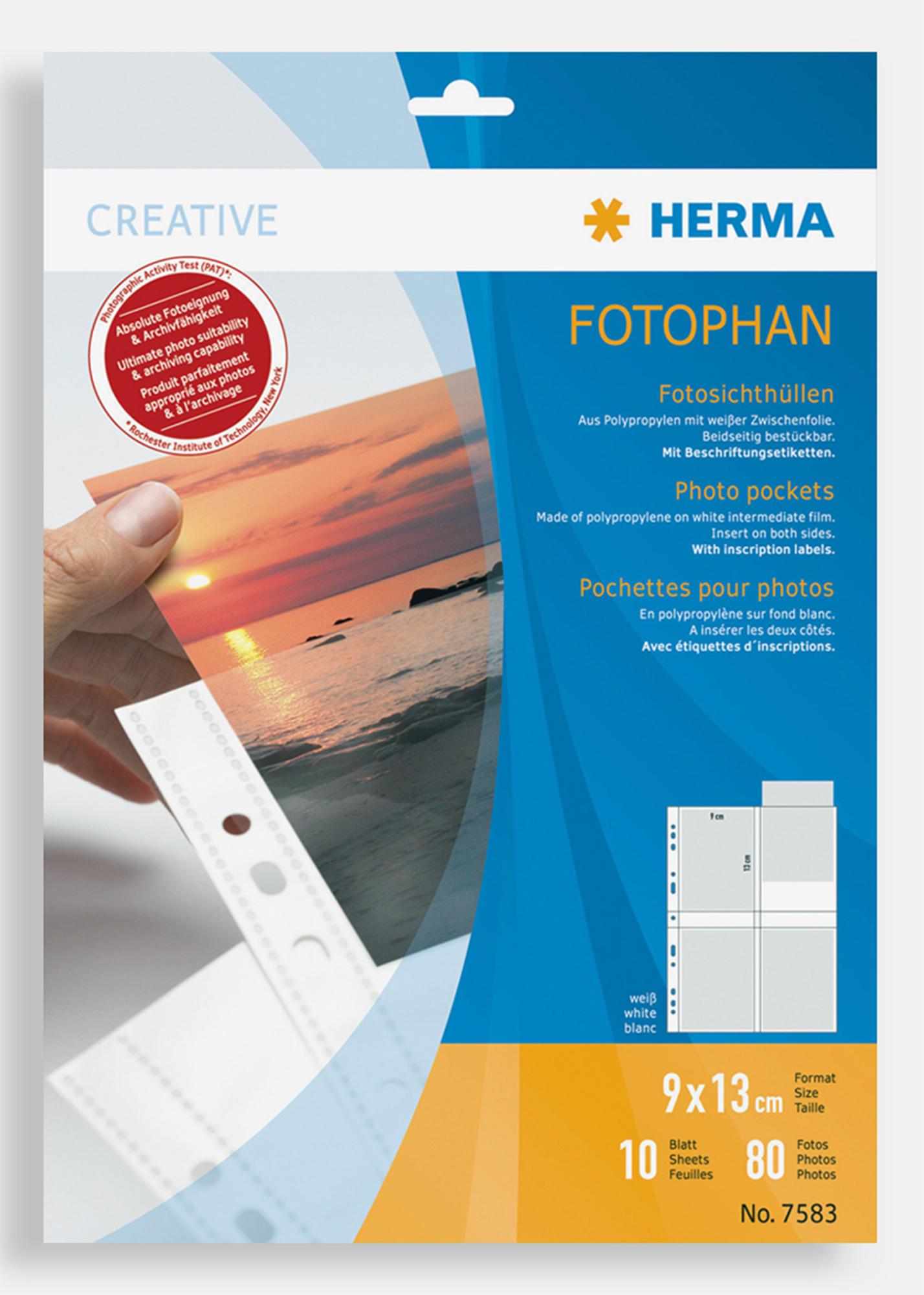 Dvipusės baltos fotokopijos kišenės 9x13 cm formato nuotraukoms (vertikali orientacija) visos Herma fotokopijos kišenės visada yra be PVC, be rūgščių ir garantuoja, kad jūsų nuotraukoms nebus pakenkta. Fotokopijos kišenės pritaikytos montuoti standartinio formato segtuvuose.