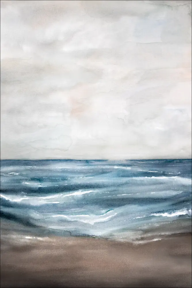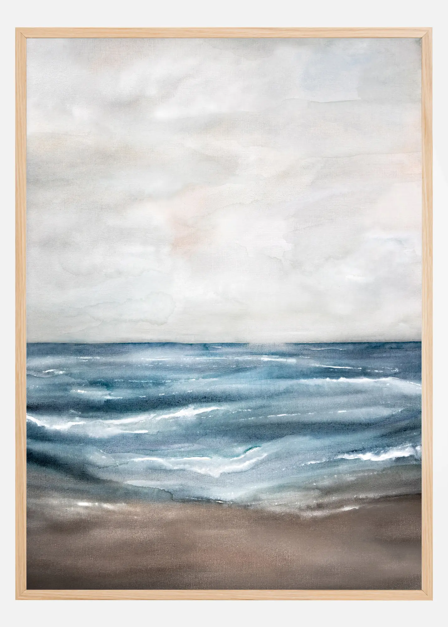 Nuostabus akvarelės paveikslas su audringa jūra ir šviesiai pilku dangumi. Nostalgija dvelkiantis, bet įspūdingas paveikslas, pabrėžiantis jūros stiprybę ir galią. Rudoji jūra priekyje suteikia papildomą spalvų atspalvį, kad sukurtų audringą atmosferą. Pajuskite jūros brizą su šiuo paveikslu ant sienos.