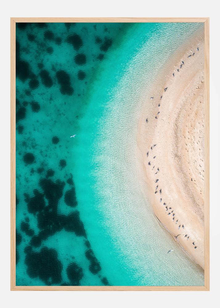 Oro vaizdas į gražų paplūdimio ruožą. Didžiulė turkio spalvos jūra puikiai dera su rožine smėlio spalva. Tamsūs akmenys jūros dugne suteikia papildomą spalvų atspalvį šiam nuostabiam vaizdui. Įsivaizduokite, kad jau šiandien esate šiame paplūdimyje.