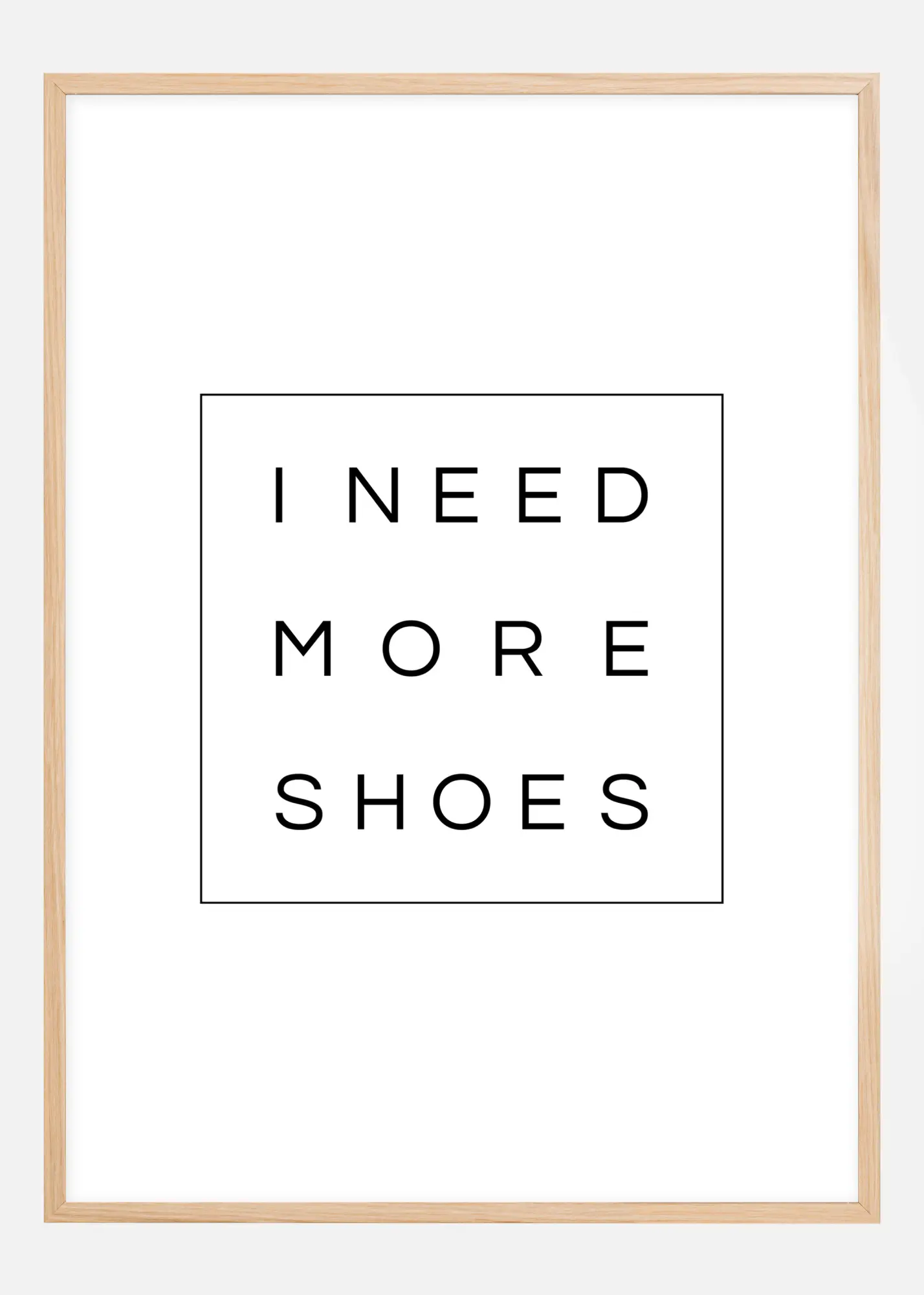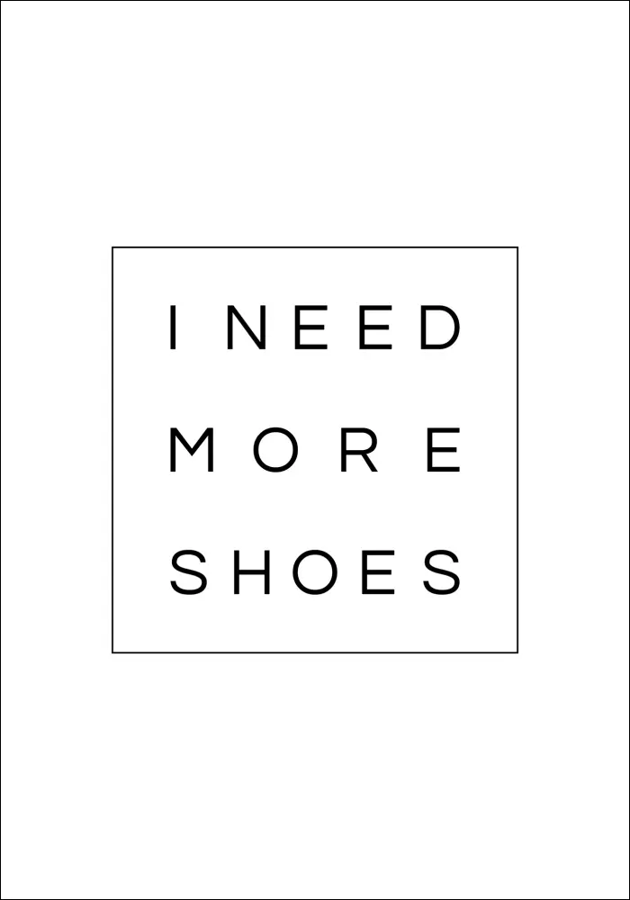 Visi mums reikia tam tikrų pagrindinių dalykų, kad išgyventume, tokių kaip oras, vanduo ir maistas. Tada yra dalykai, kurių mums reikia, kad gyvenimas būtų kuo malonesnis, pavyzdžiui, batai! Jei esate batų mėgėjas, kuris tiesiog dievina naujų batų kvapą ir jausmą, šis plakatas yra tobulas jums. Plakatas turi juodai baltą, elegantišką dizainą su paprasta žinia "Man reikia daugiau batų", atspausdinta puošniomis raidėmis. Aplink raides eina plona linija kvadrato forma. Kadangi plakatą galima įsigyti įvairių dydžių, galite rasti tinkantį tiek biuro stalui, tiek svetainės kambariui. Papildykite plakatu su rėmeliu, kuris atitinka jūsų mėgstamiausią spalvą! Iš tiesų nereikia visada būti taip giliai susimąsčiusiam.