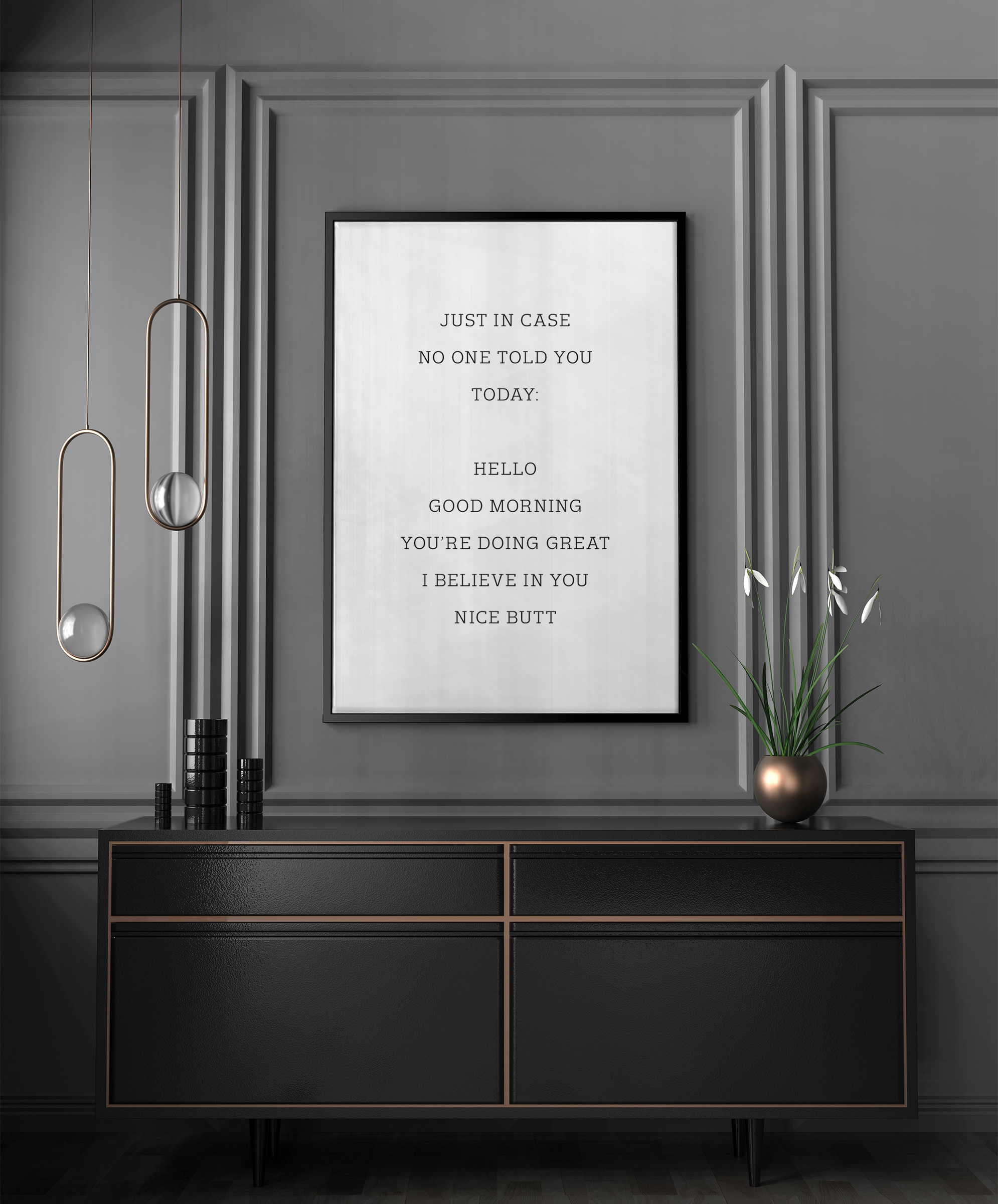 Madingas plakatas, kuris puikiai derinamas su kitais motyvais, kad sukurtumėte madingą paveikslo sieną.