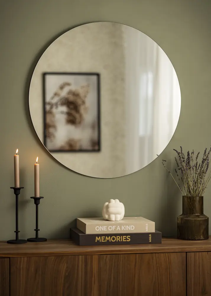 75 cm Ø apvalus veidrodis, kuris yra apvalių veidrodžių serijos dalis iš KAILA. Galima įsigyti net 13 dydžių, kad rastumėte dydį, puikiai tinkantį jūsų kambariui. Veidrodis yra itin plonas ir elegantiškas, tinkantis visų tipų kambariams ir interjero stiliams.