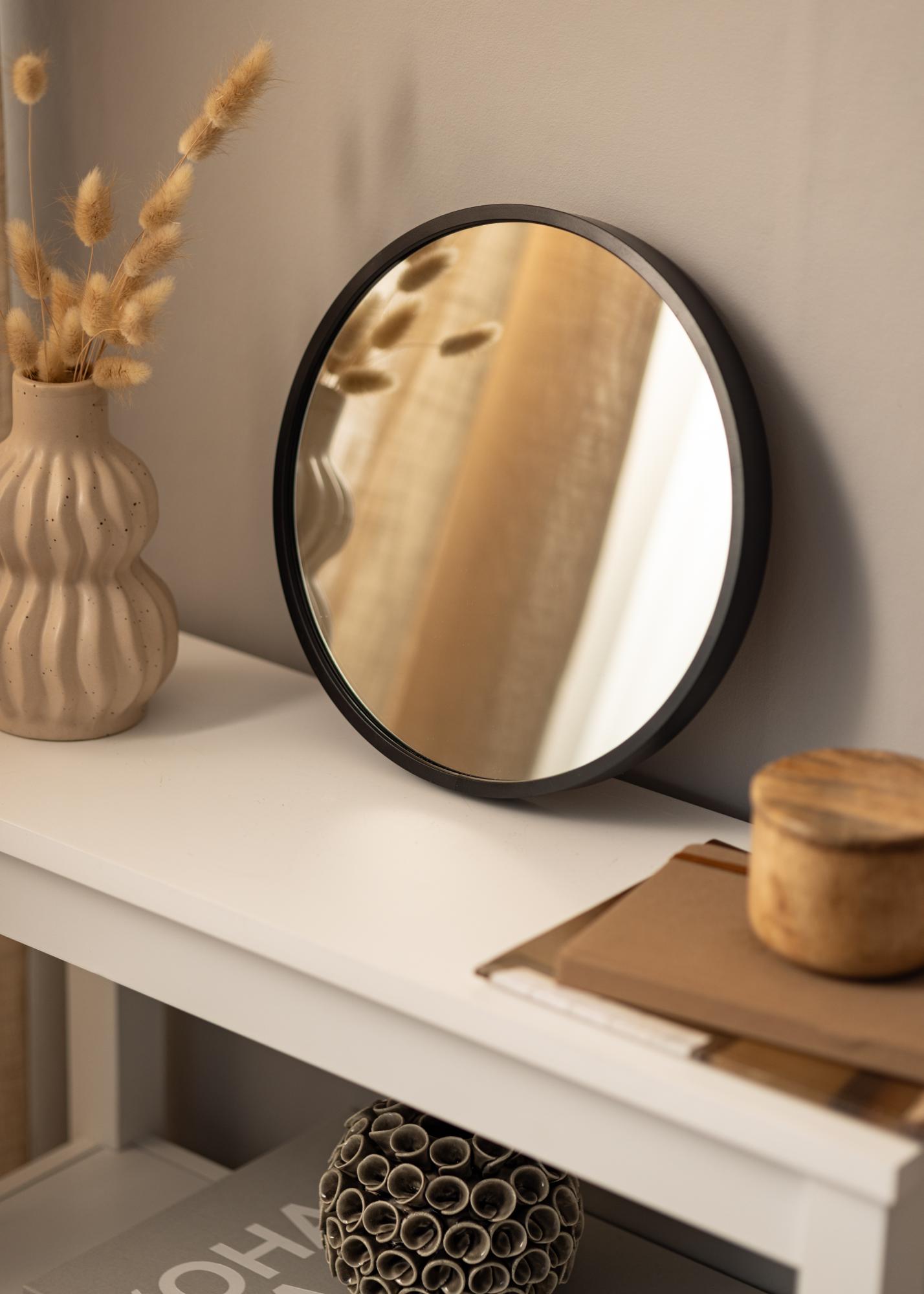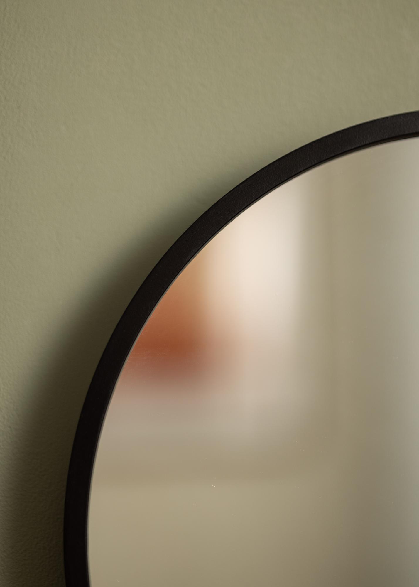 KAILA Round Mirror Edge Black yra apvalus veidrodis su stilingu plonu metaliniu rėmu, nudažytu matiniu juodu, kuris suteikia industrinį ir madingą įvaizdį. Rėmas – priklausomai nuo dydžio – turi 30-40 mm gylį, todėl veidrodžio stiklas atsitraukia šiek tiek nuo sienos ir sukuria įspūdingą 3D efektą. Rėmo gylis taip pat daro veidrodį tvirtą, tuo pačiu išlaikant jo minimalistinį įvaizdį. Puikus apvalus veidrodis, kurį galima pastatyti bet kuriame kambaryje, kur norite pridėti funkciją ir stilingą švedišką dizainą!