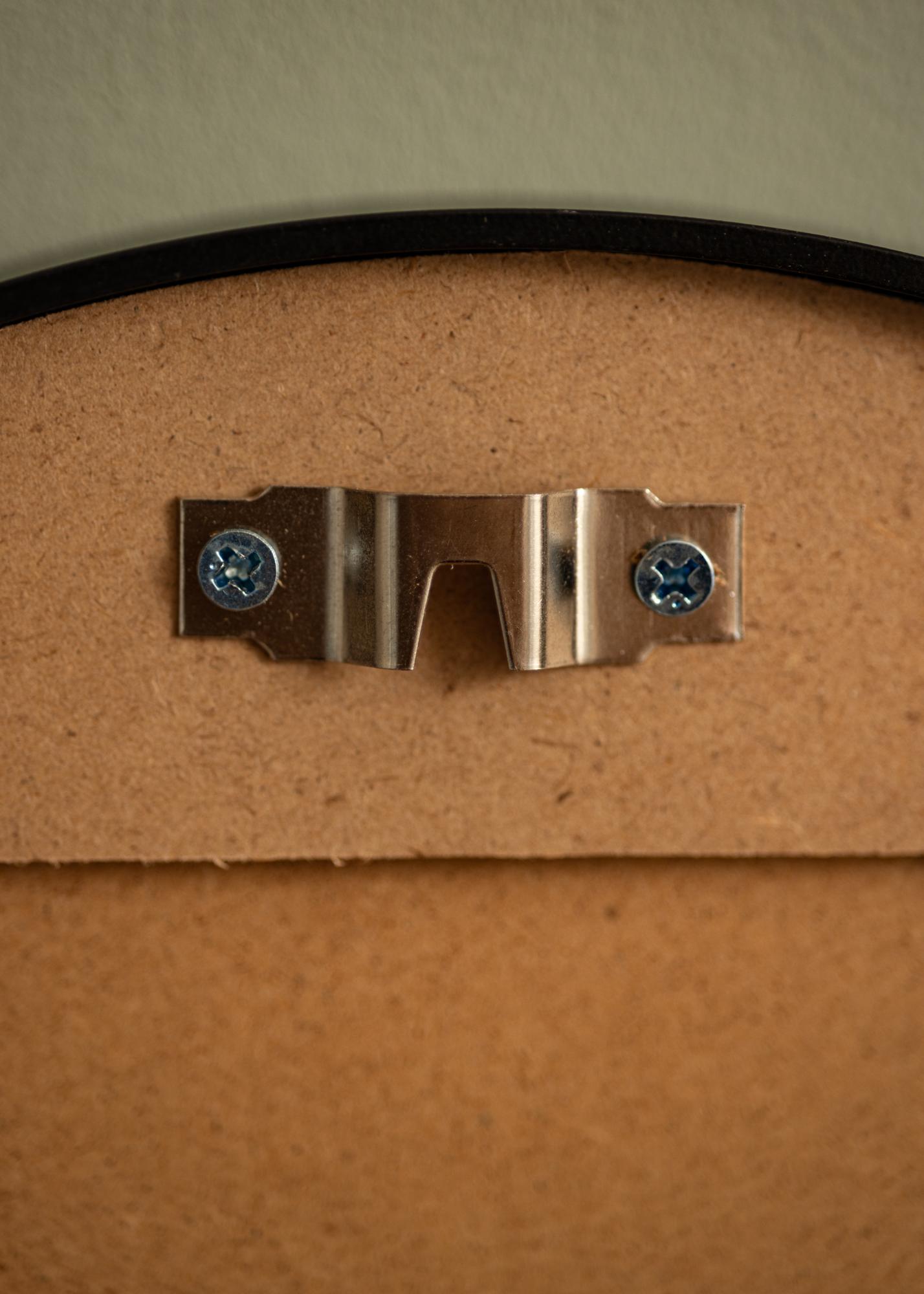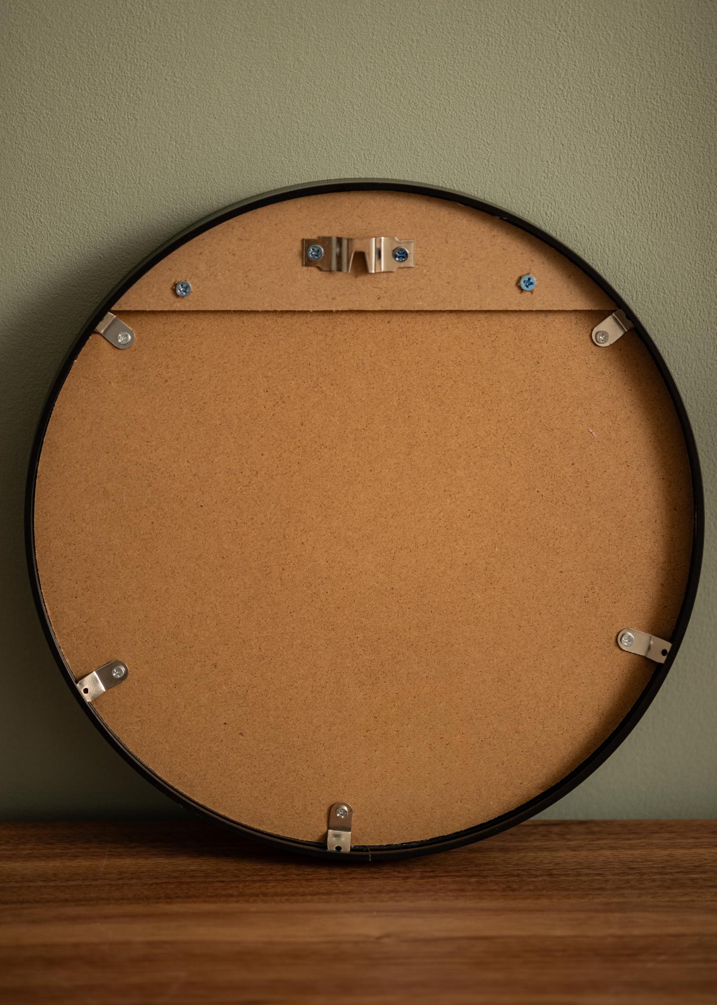 Šis veidrodis yra kelių dydžių, o šis variantas yra 30 cm skersmens. Ant veidrodžio nugaros yra iš anksto sumontuotas sienos laikiklis, kuris užtikrina lengvą ir stabilų montavimą ant jūsų sienos. Tinkami varžtai ir kaiščiai yra pritvirtinti.