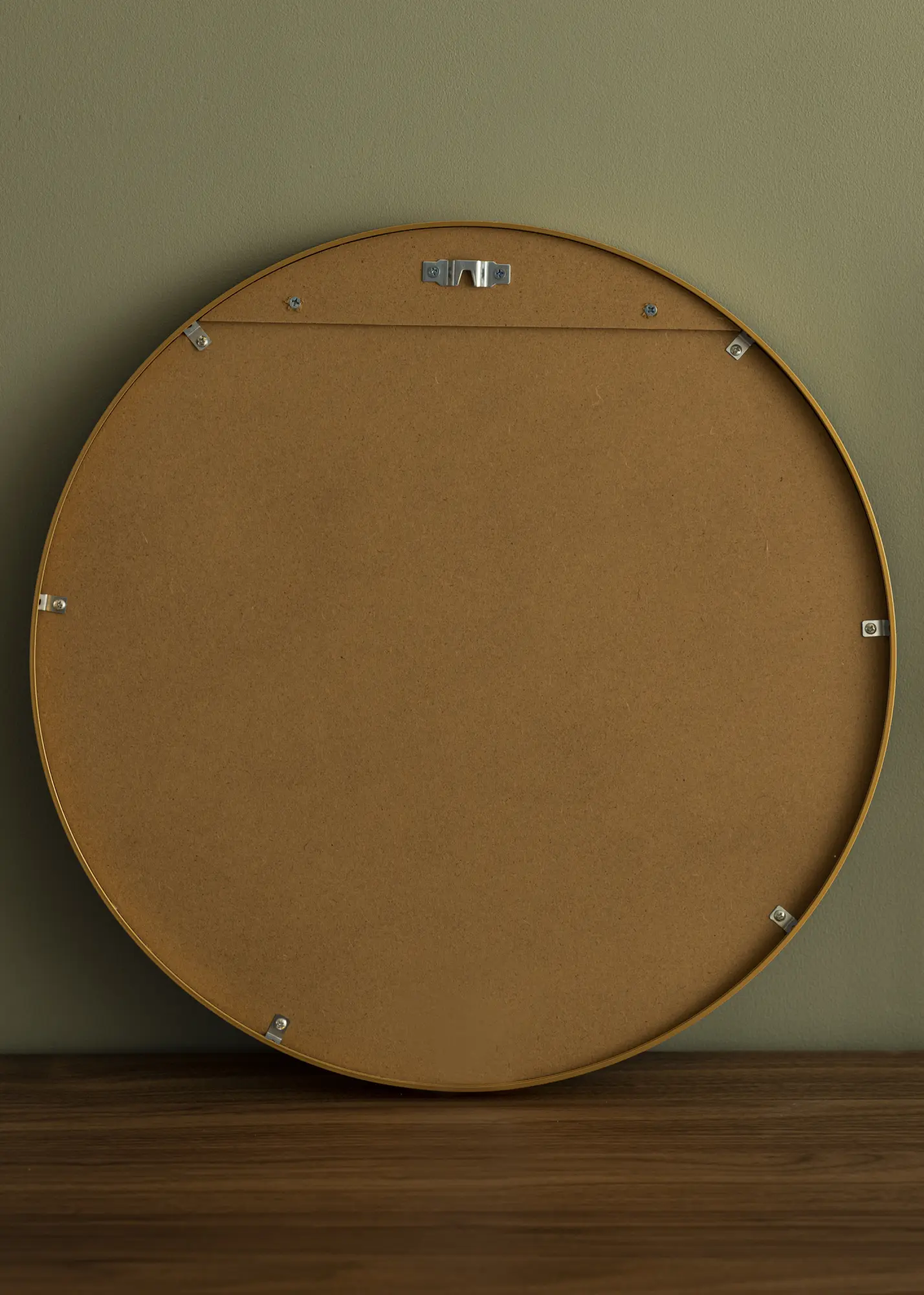 Apvalus veidrodis su elegantišku švedišku dizainu ir metaliniu rėmu, kurio graži auksinė apdaila. Rėmas turi šlifuotą paviršių, kuris suteikia gražiai aukso spalvai šiek tiek matinį vaizdą. Rėmas yra taip pat madingai plonas, bet tuo pačiu, priklausomai nuo dydžio, turi gylį nuo 30-40 mm, kas leidžia jam išeiti šiek tiek iš sienos ir sukurti įspūdingą 3D efektą. Rėmo gylis taip pat daro veidrodį tvirtą ir solidų, nesumažinant minimalistinės veidrodžio dvasios.