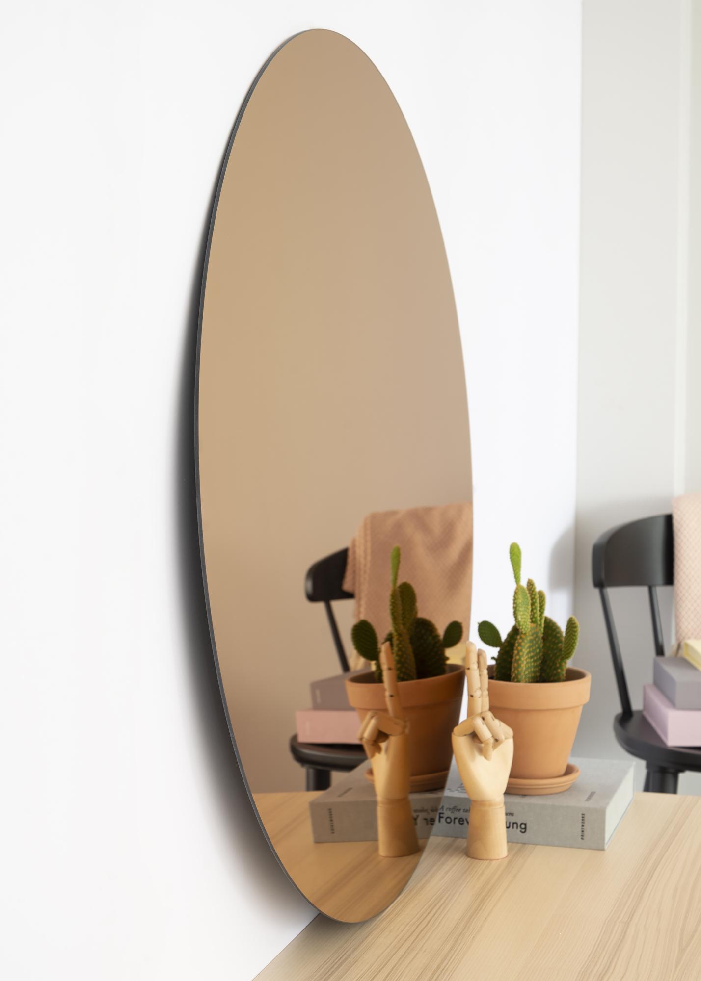 Kai susitinka stilinga forma su įspūdingomis detalėmis, rezultatas gali būti magiškas – kaip šiuo atveju su šiuo apvaliu veidrodžiu. Veidrodis yra plonas ir be rėmo, todėl atrodo paprastas, o rožinio aukso tonų veidrodžio stiklas suteikia veidrodžiui didelį išskirtinumą. Tai klasikinis dizainas su moderniu posūkiu!