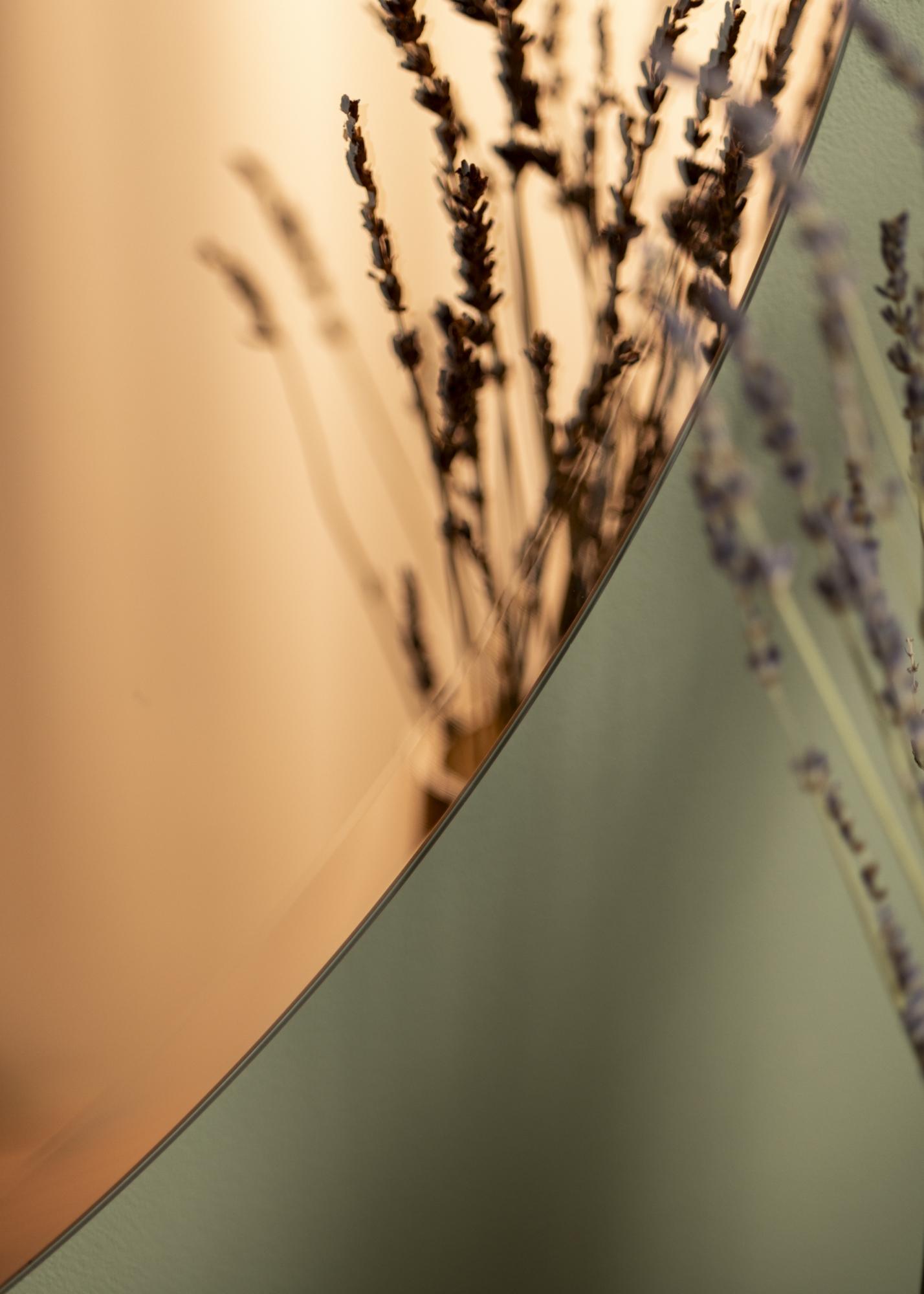 Rose Gold Deluxe yra sieninis veidrodis su laikui nepavaldžiu dizainu ir moderniu akcentu, suteiktu tonuoto veidrodžio stiklo. Veidrodžio stiklo šilta rožinio aukso atspalvis suteikia išskirtinį ir unikalų išraišką, kuri puikiai dera su elegantiška apvalia forma. Papildomai elegancijai šis veidrodis taip pat turi briaunotą kraštą.