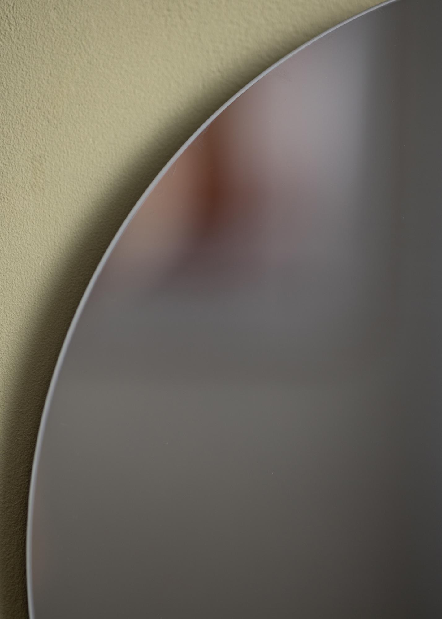 Štai apvali ir elegantiška veidrodis su šiek tiek daugiau; elegantiškas ir efektingas pilko atspalvio veidrodžio stiklas. Tai kartu su veidrodžio minimalistine forma – plona ir be rėmo – sukuria labai skoningą visumą. Veidrodžio apvali, švelni forma su kontrastu šaltam, pilko atspalvio veidrodžio stiklui taip pat yra stilingas šios elegantiškos sieninės veidrodžio aspektas.