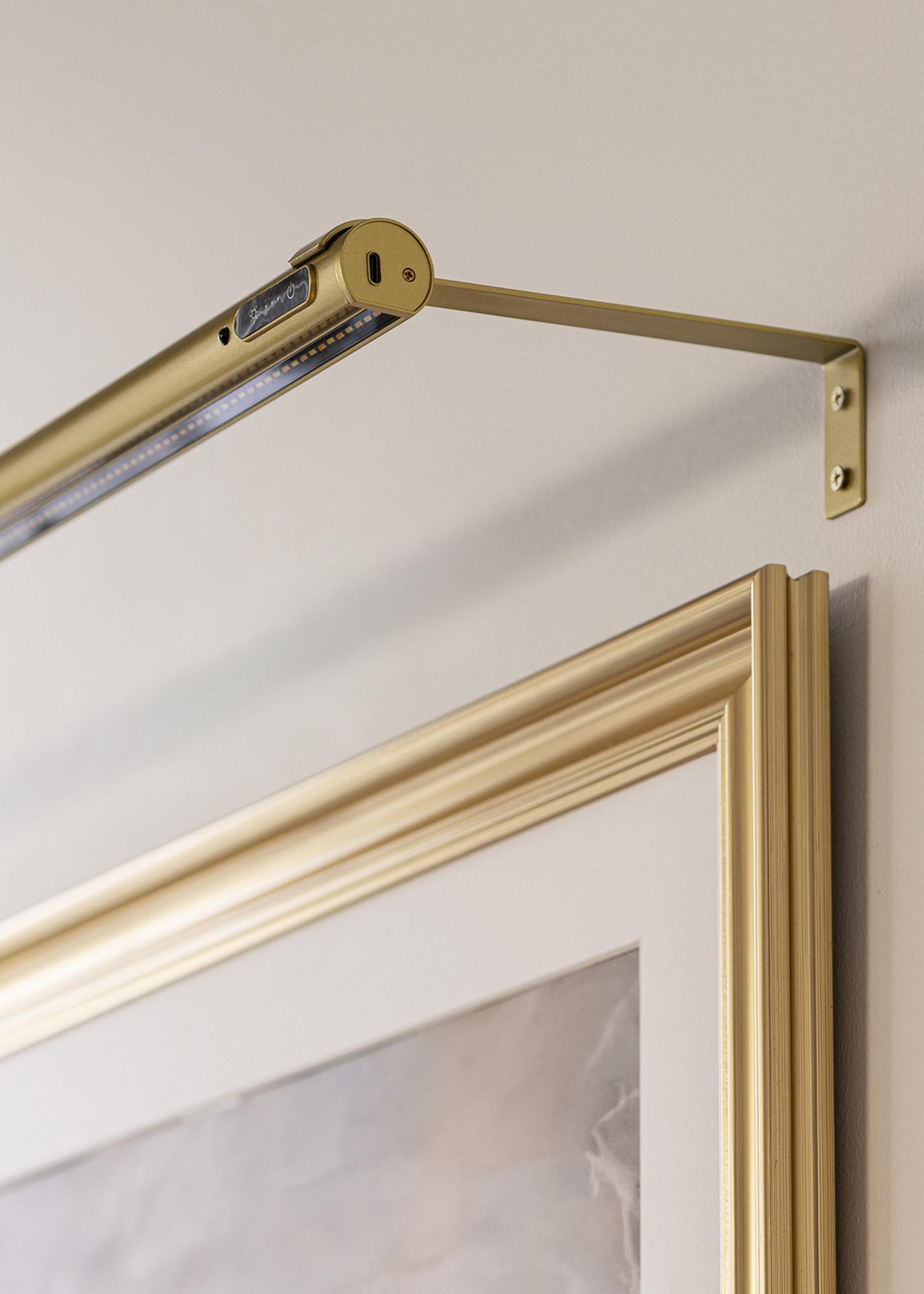 Pabrėžkite savo meno kūrinius su KAILA Brilliance – stilingu ir baterijomis maitinamu paveikslų apšvietimu, kuris suteikia jūsų paveikslams tobulą apšvietimą be laidų! Dėl belaidės konstrukcijos jį galima lengvai pastatyti bet kur, nesirūpinant elektros lizdais. Dėl elegantiškos auksinės apdailos ir reguliuojamos rankos jis paskleidžia švelnią ir tolygią šviesą ant jūsų paveikslo, gražiai paryškindamas detales ir spalvas. Paprastas montavimas ir patogus naudojimas daro šį paveikslų apšvietimą puikiu pasirinkimu tiek namams, tiek galerijai.