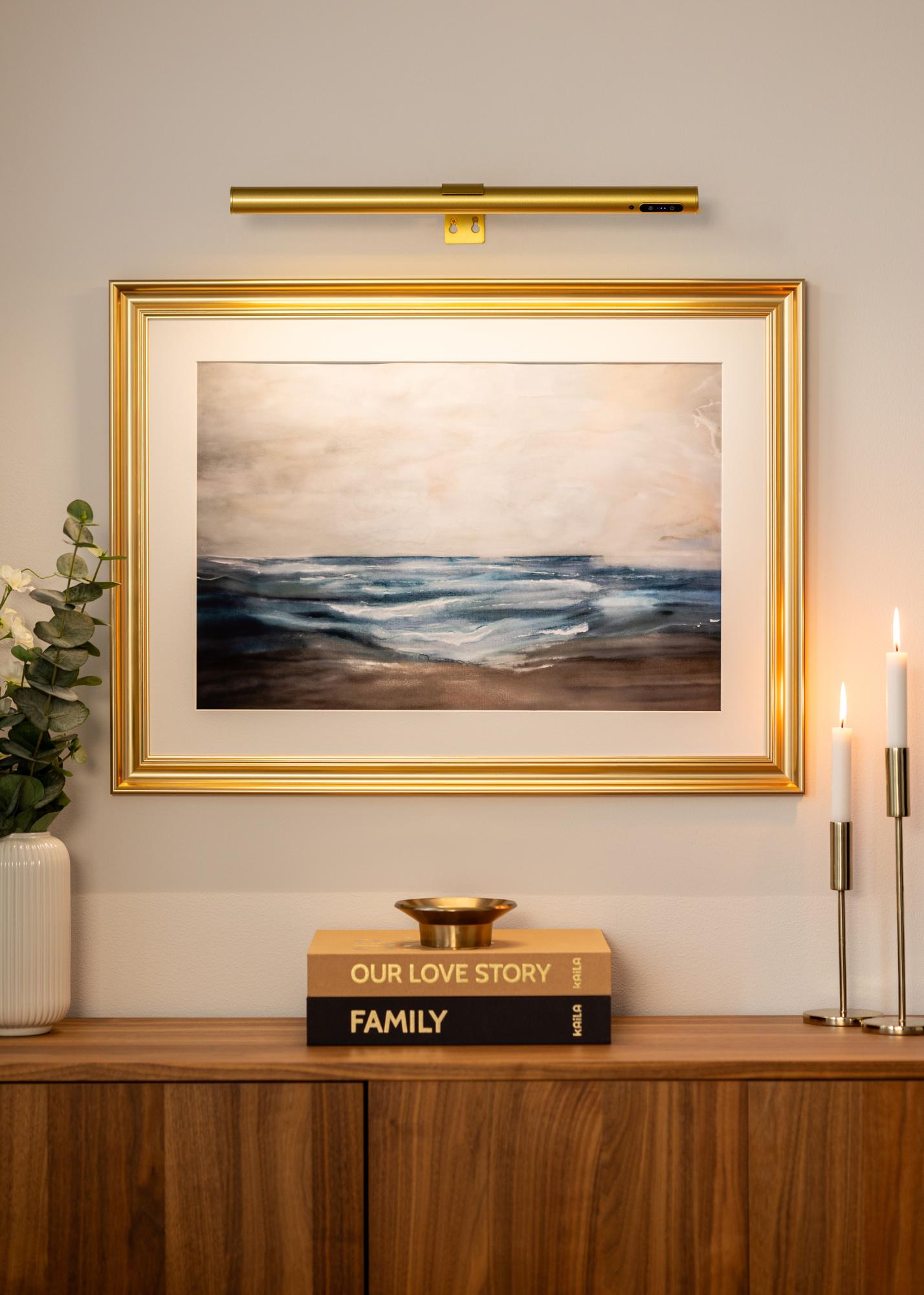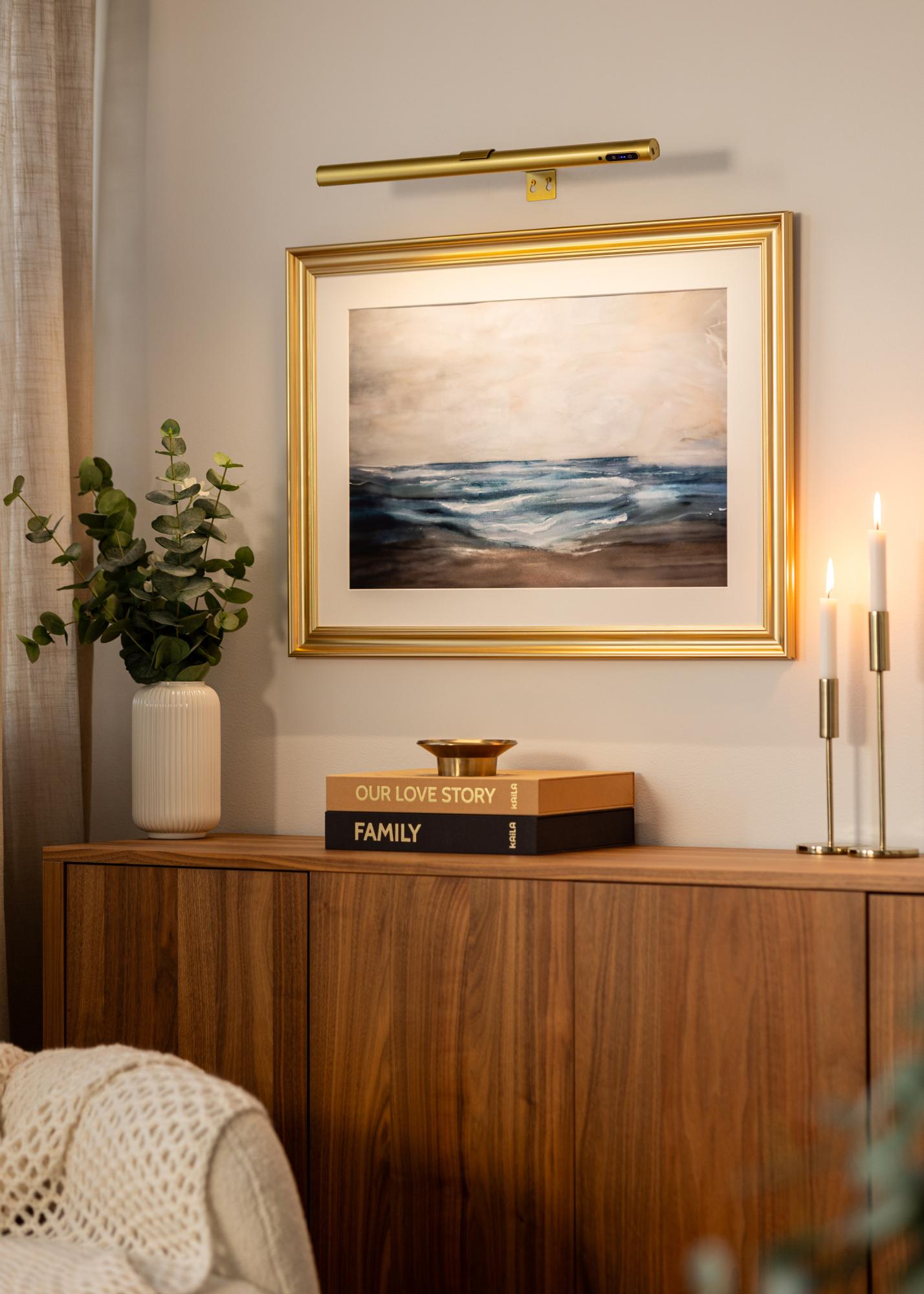 KAILA Halo yra stilingas ir baterijomis maitinamas paveikslų apšvietimas aukso spalvos, puikiai tinkantis apšviesti jūsų kūrinius be trukdančių laidų. Dėl belaidžio dizaino galite jį pastatyti bet kur, nesirūpindami elektros lizdais. Elegantiškas aukso spalvos paviršius suteikia išskirtinę išvaizdą, o šviesa paskirstoma tolygiai, kad gražiai paryškintų detales ir spalvas. Lengvai montuojamas ir patogus naudoti – praktiškas sprendimas, kad jūsų paveikslai sulauktų dėmesio, kurio nusipelno.