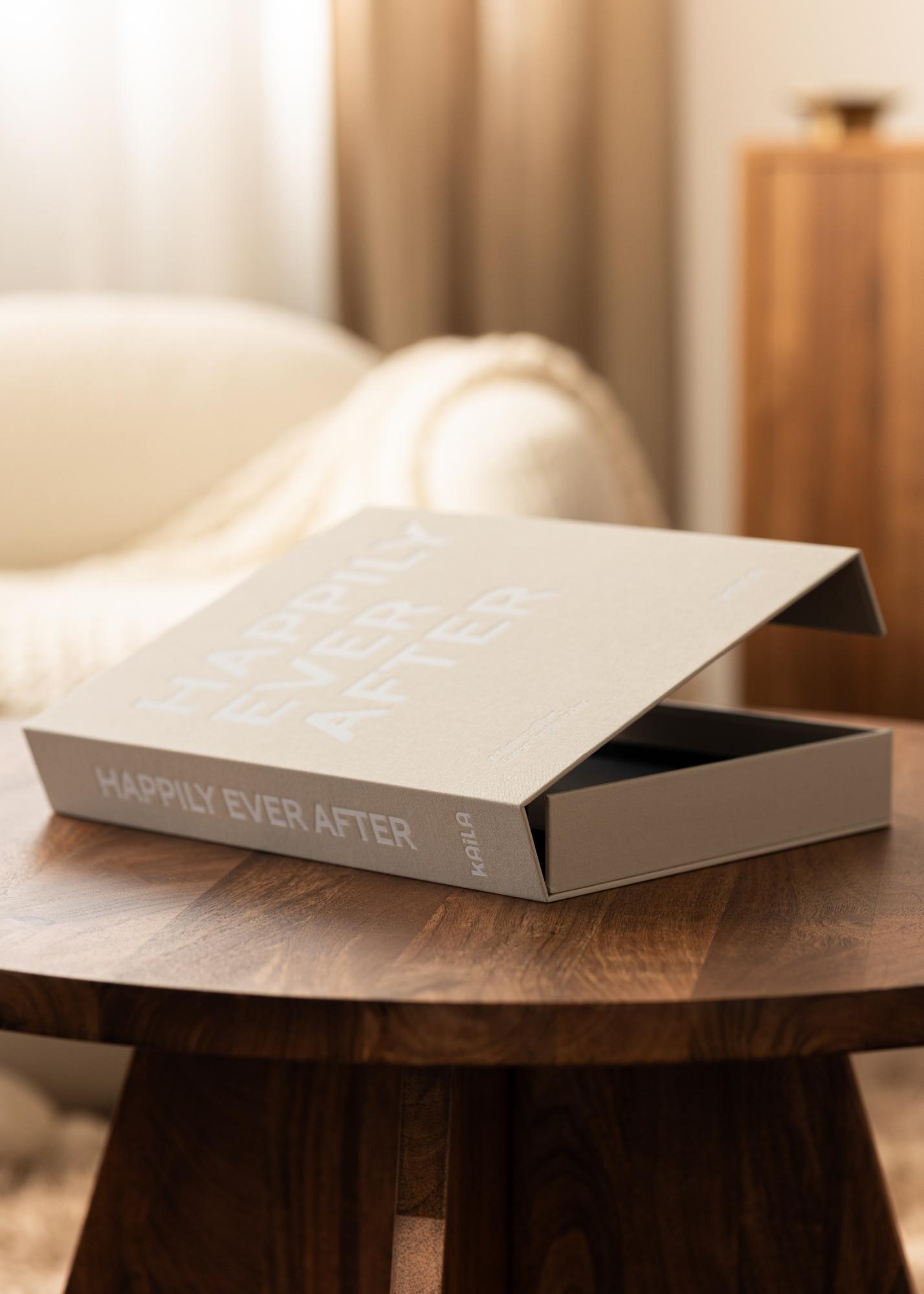 KAILA Happily Ever After yra išskirtinis ir elegantiškas vestuvių albumas su stilingu kreminiu dizainu. Jis sukurtas kaip kavos staliuko albumas, todėl yra gražus interjero akcentas, tuo pačiu išsaugant jūsų įsimintiniausias akimirkas. Albume yra 60 juodų, rūgšties neturinčių puslapių, kuriuose galite stilingai pritvirtinti savo vestuvių nuotraukas. Puikiai tinka kurti laiko neišdildomą prisiminimų kolekciją iš didžiosios dienos.