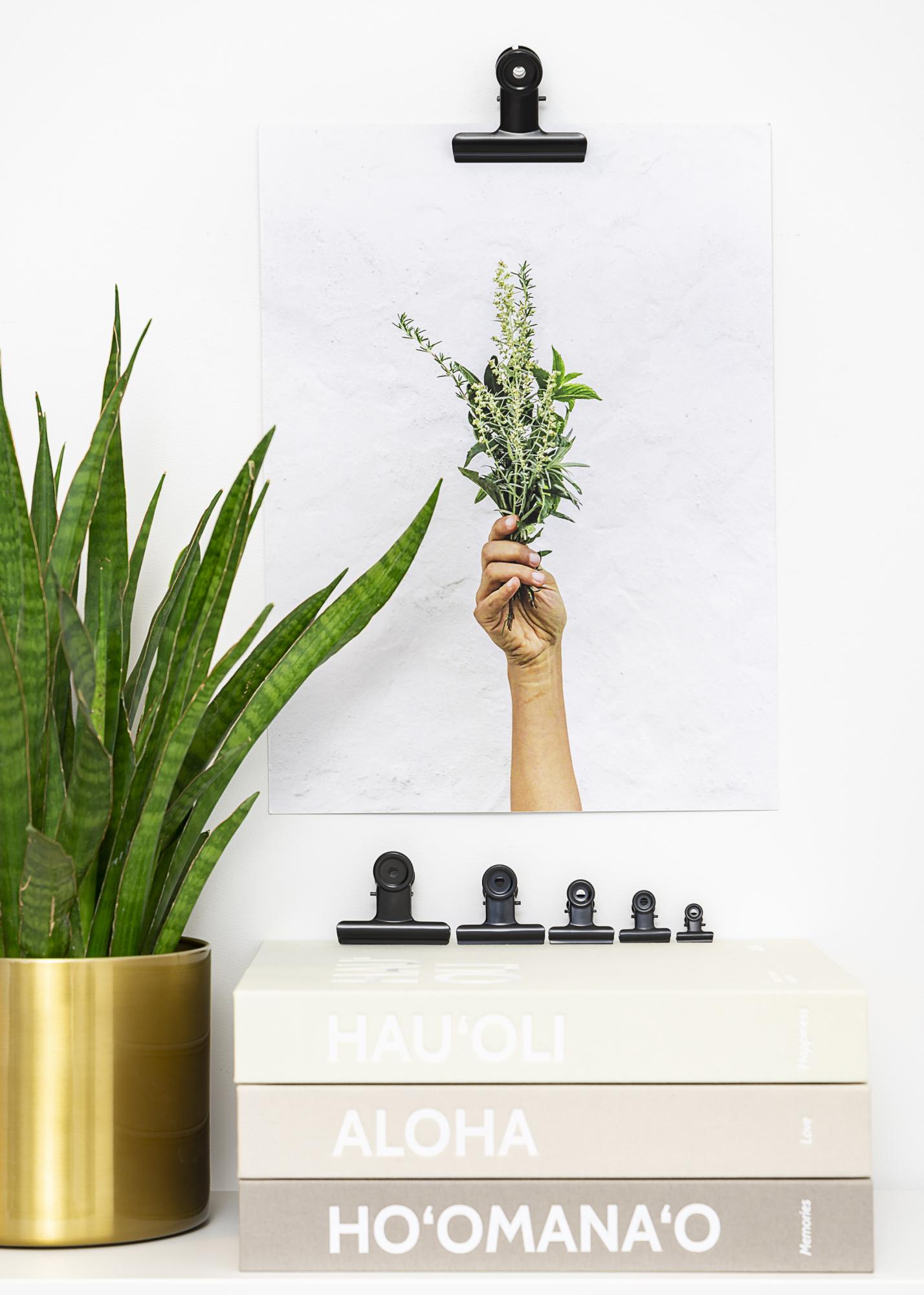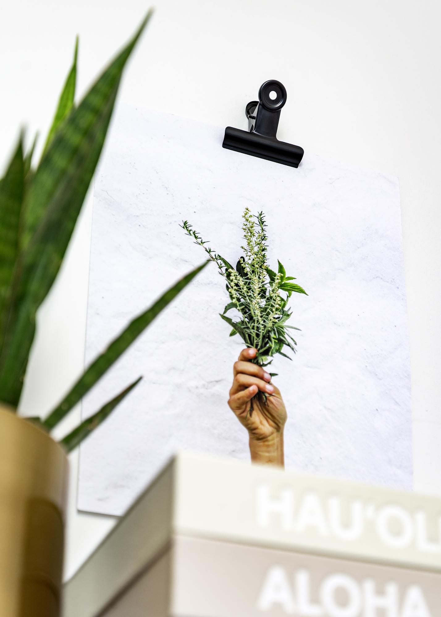 Šis juodas metalinis segtukas turi elegantišką matinę apdailą ir suteikia jūsų plakatams ir spaudiniams prašmatnų bei madingą pakabinimą. Segtuko atidarymo plotis leidžia tvirtai užfiksuoti net ploniausią popierių, taip pat gali būti naudojamas su šiek tiek storesnio popieriaus motyvais. Jei turite didelį plakatą, kurį norite pakabinti, galite pasirinkti naudoti du plakatų segtukus. Metalinio segtuko dizainas yra stilingas, o skylės segtuko apvalioje viršuje leidžia lengvai ir patogiai jį pakabinti ant sienos su maža vinimi ar varžtu.