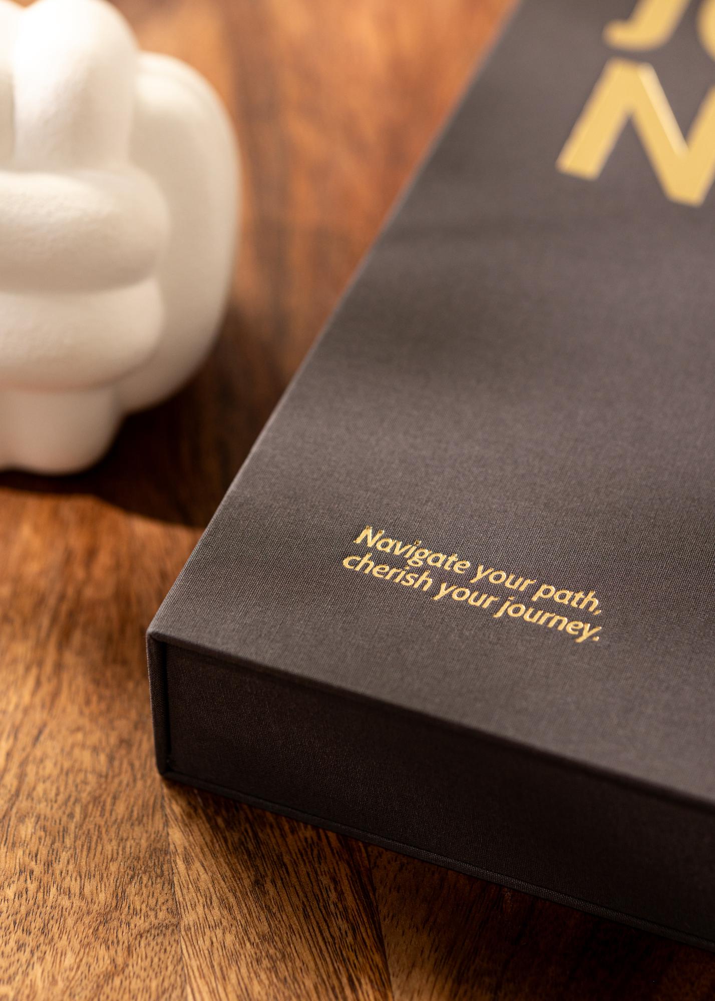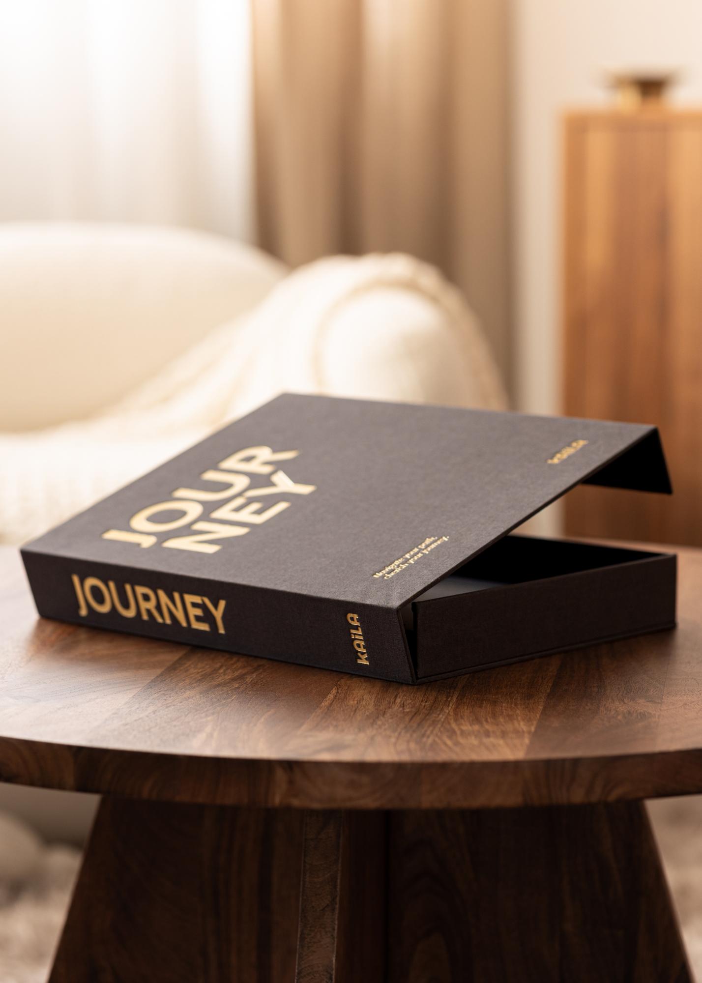 Atraskite KAILA JOURNEY Black - elegantišką ir stilingą nuotraukų albumą, sukurtą būti gražia interjero detale jūsų namuose. Su savo smėlio spalvos viršeliais ir juodais puslapiais šis albumas taps tobula Coffee Table Book, kurią galėsite didžiuotis parodydami.
