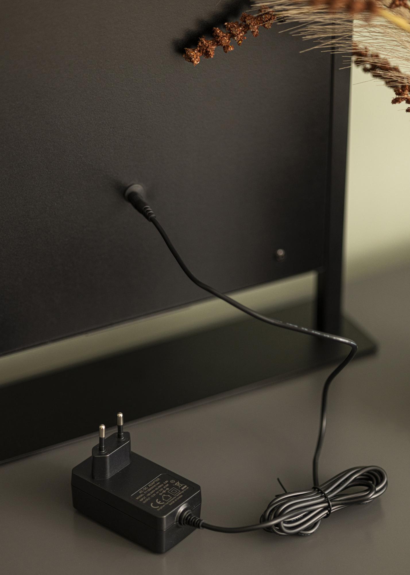 Veidrodis yra elegantiškos juodos spalvos, kuri puikiai dera su daugumos kambarių interjeru. Juodą spalvą papildina 12 LED lempučių, kurios padeda dar labiau sustiprinti stilingą išraišką. Integruotos LED lemputės yra išdėstytos tarsi rėmas aplink 30x41 cm dydžio veidrodžio paviršių. Laikydami jutiklinį mygtuką veidrodžio priekyje keletą sekundžių galite pritemdyti apšvietimą iki jums tinkamo šviesumo lygio. Prijungimas prie elektros tinklo atliekamas su kištuku.