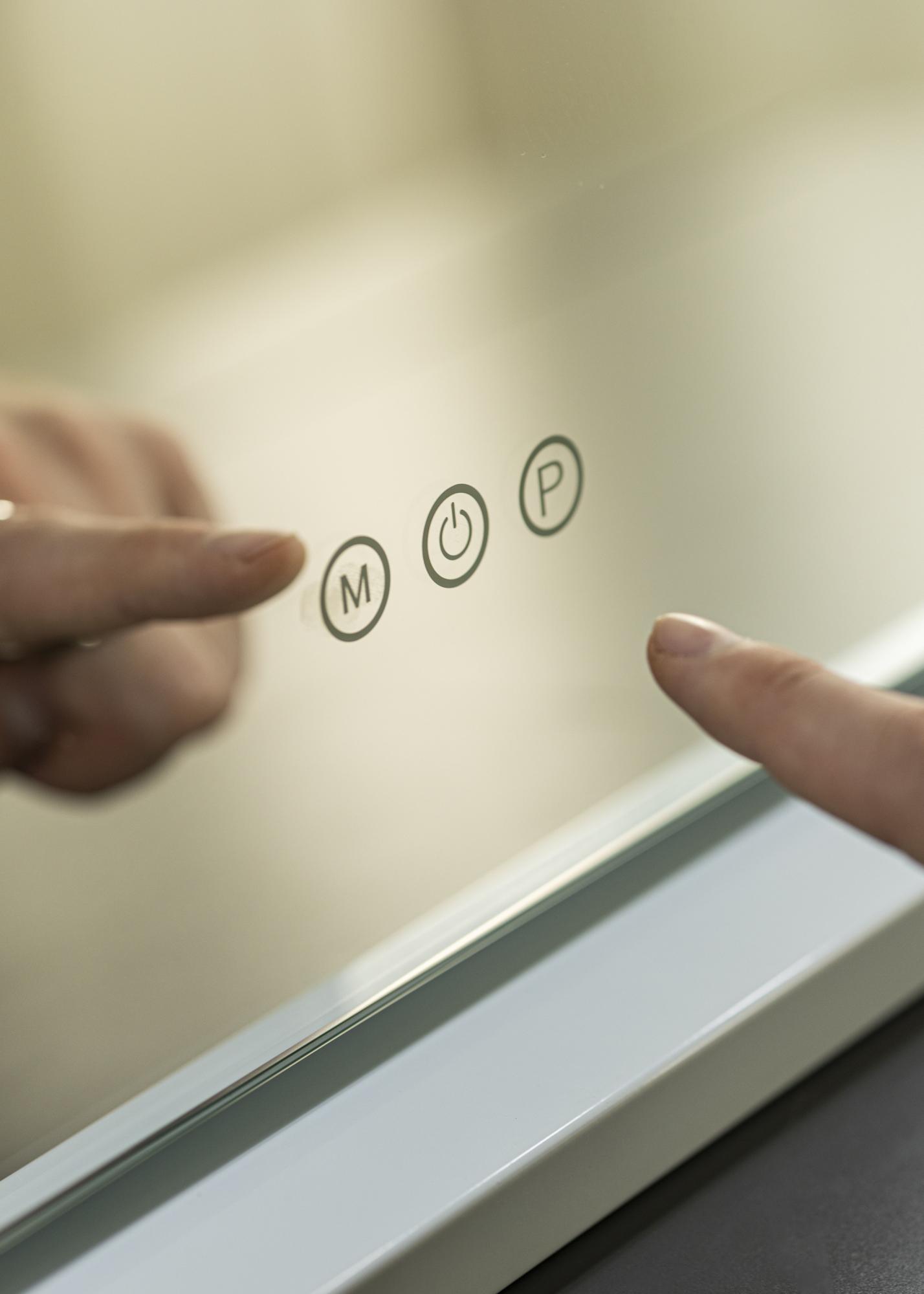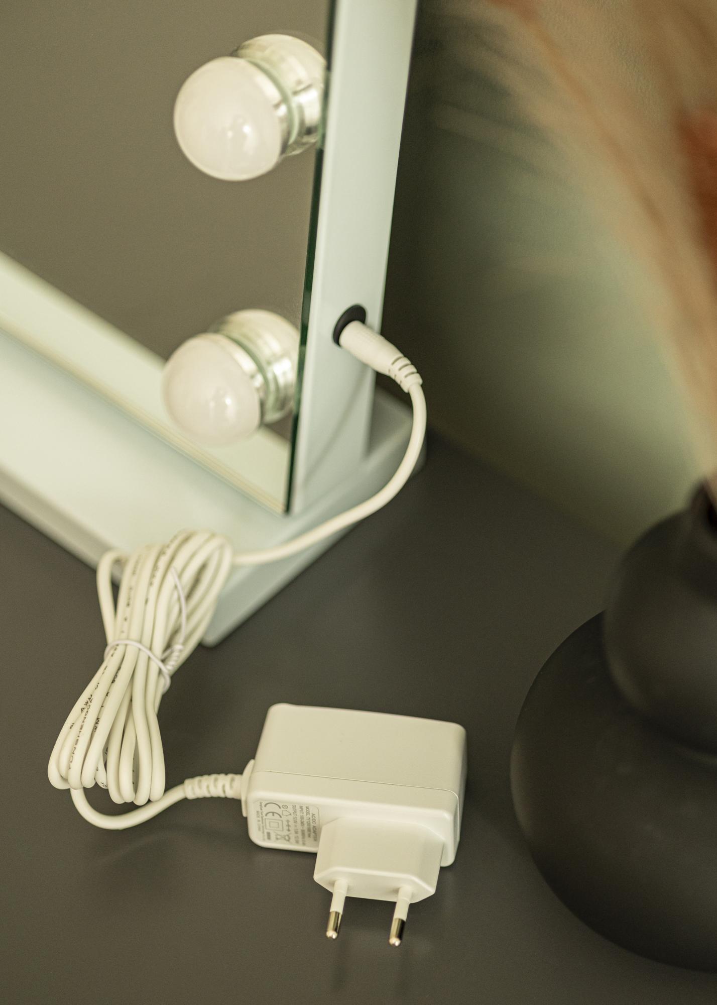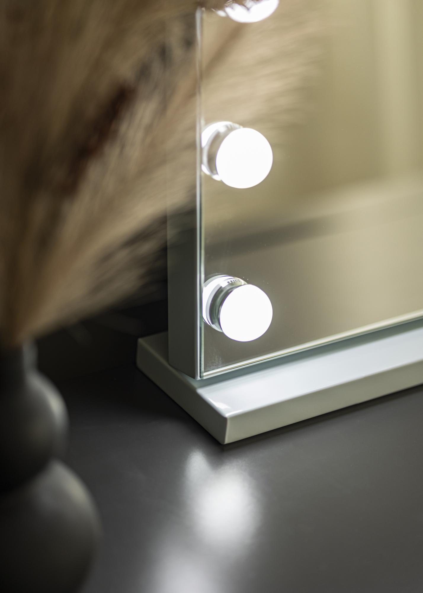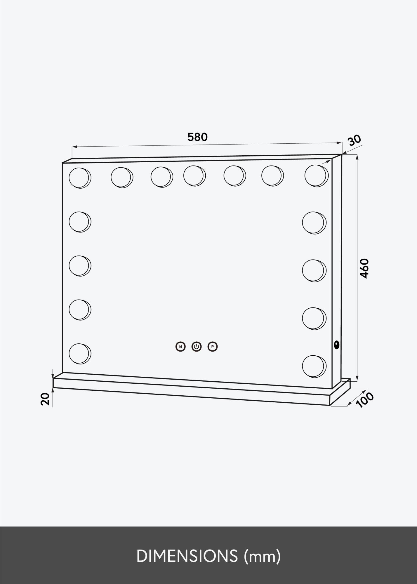 Sukurkite prabangią ir funkcionalią makiažo erdvę su mūsų elegantišku veidrodžiu su apšvietimu. Šis veidrodis yra stilingos stačiakampės formos ir turi integruotą apšvietimą, kuris suteikia tolygų ir malonų šviesą, puikiai tinkančią kasdieninei makiažo rutinai. Modernus dizainas užtikrina, kad veidrodis ne tik pagerins jūsų makiažo kampelį, bet ir taps patrauklia interjero detale. Jį galite pastatyti svetainėje arba prieškambaryje, kad suteiktumėte stilingą foninį apšvietimą. Veidrodžio apšvietimą sudaro 15 pritemdomų LED lempučių, kurios įrėmina didelį veidrodžio paviršių 58x46 cm. Šviesos stiprumą ir spalvos temperatūrą lengva reguliuoti naudojant jutiklinius mygtukus veidrodžio priekyje, pažymėtus "P" šviesos stiprumui ir "M" spalvos temperatūrai, todėl lengva pritaikyti apšvietimą pagal jūsų poreikius.