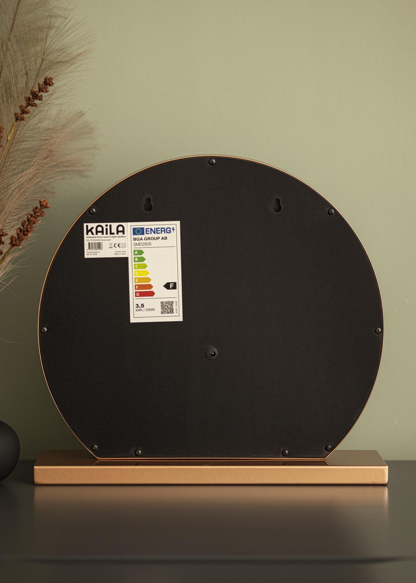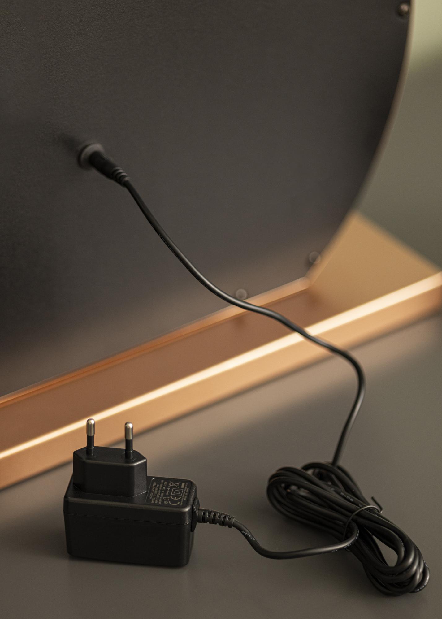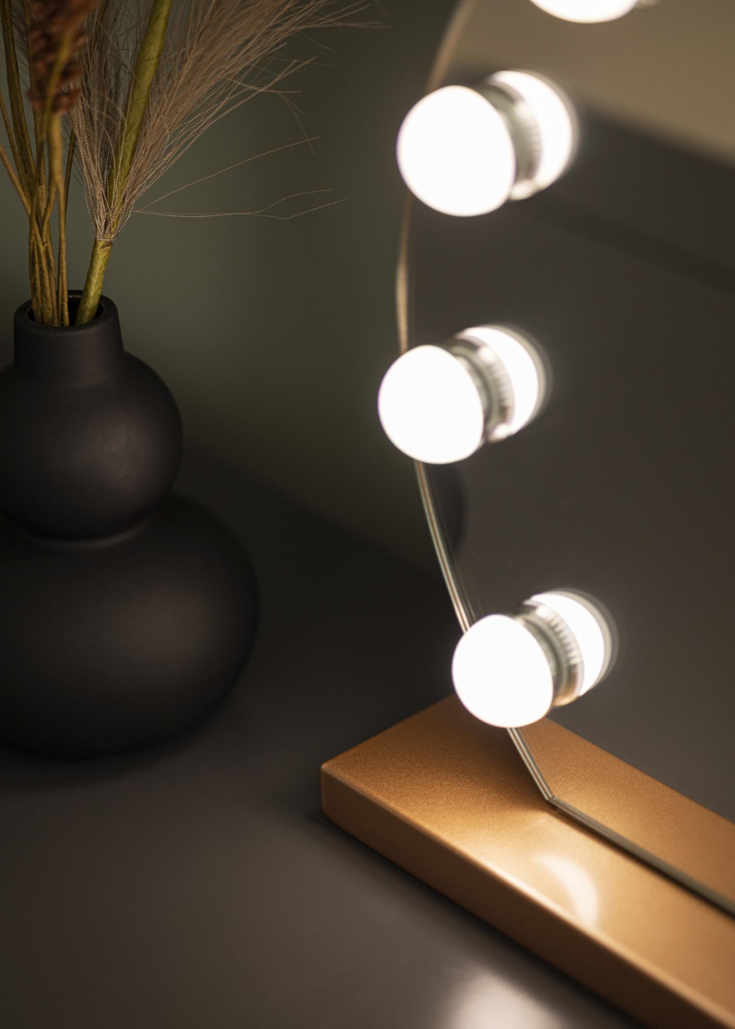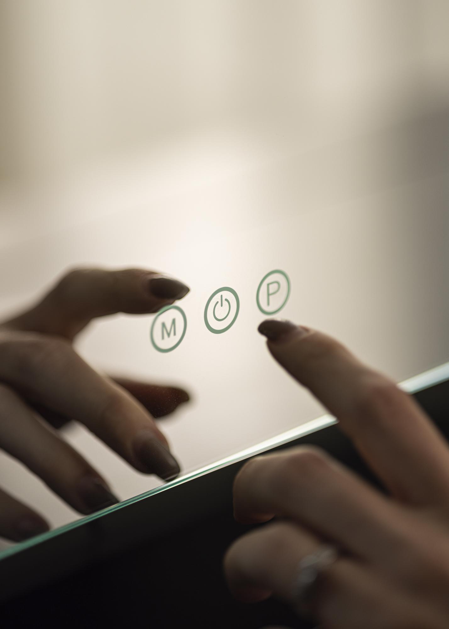 Šis veidrodis pasižymi klasikine apvalia forma su 10 didelių LED lempučių, kurios įrėmina 40x30 cm dydžio veidrodinį paviršių. Tai suteikia išskirtinę išvaizdą, kuri dar labiau sustiprėja dėl veidrodžio pagrindo, pagaminto iš madingo rožinio aukso atspalvio. Jūs įjungiate integruotą apšvietimą su jutikliniu mygtuku veidrodžio priekyje. Taip pat galite reguliuoti šviesos spalvos temperatūrą ir šviesumą pagal savo pageidavimus. Tai taip pat galima atlikti naudojant patogius jutiklinius mygtukus, pažymėtus „M“ spalvos temperatūros reguliavimui ir „P“ šviesumo nustatymui. Galite pasirinkti iš trijų spalvos temperatūrų: šilta, šalta ir natūrali šviesa.