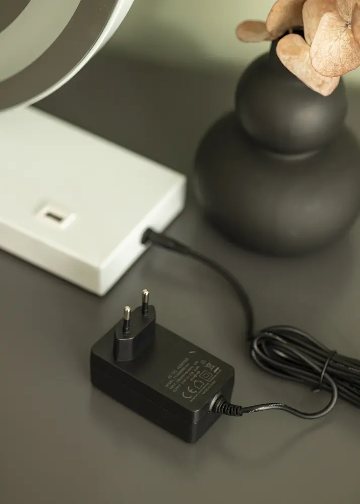 Šis veidrodis turi dar vieną savybę – USB lizdą išmaniųjų įrenginių įkrovimui. Taip galite krauti telefoną ir tuo pačiu laikyti jį šalia, kai pasidažote. Elektrinis prijungimas atliekamas su kištuku.