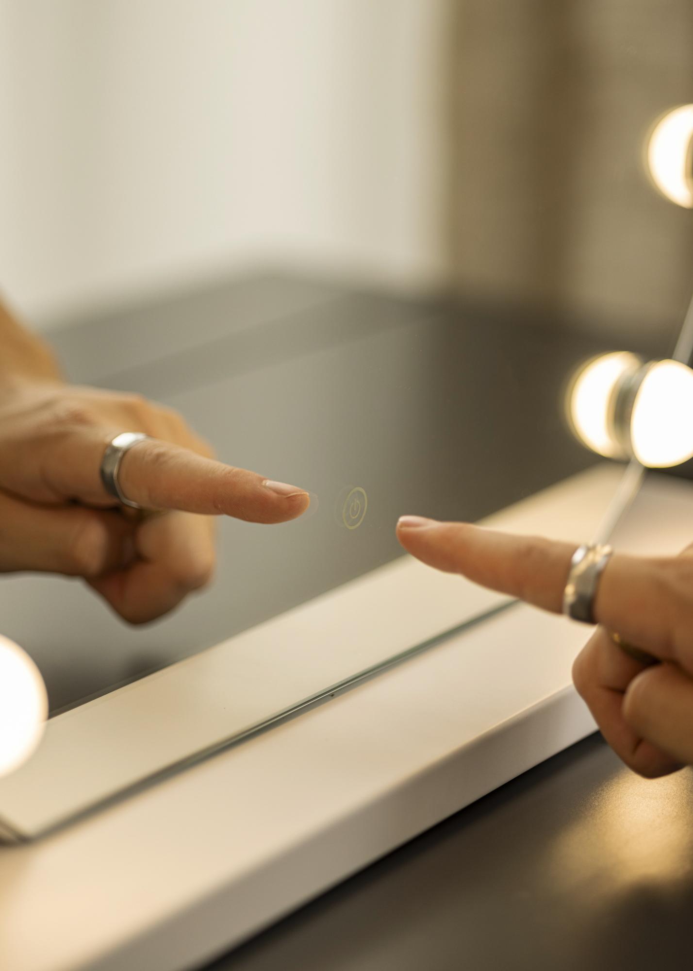 Patirkite Holivudo žavesį su šiuo makiažo veidrodžiu su apšvietimu, kuris puikiai derina eleganciją ir funkcionalumą. Makiažo veidrodis yra gaivaus balto atspalvio ir turi 12 dekoratyvinių LED lemputės, kurios skleidžia šiltą baltą šviesą 3000K, sukuriant idealias sąlygas makiažui. Apšvietimas lengvai įjungiamas ir reguliuojamas su lietimo mygtuku, o naudojant LED technologiją, jis yra tiek energiją taupantis, tiek suteikiantis natūralią šviesą.