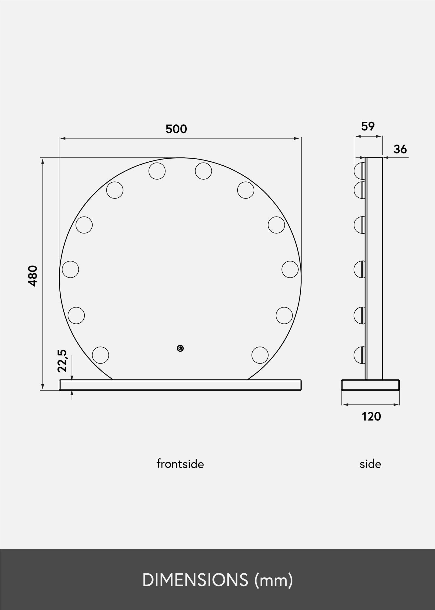 Su savo matmenimis 50x48 cm ir gražiai suapvalinta forma, šis makiažo veidrodis ne tik praktiškas, bet ir stilingas interjero akcentas, suteikiantis prabangos pojūtį jūsų namams. Jis puikiai tinka paversti bet kokį kambarį asmeniniu grožio salonu, kur galite jaustis tiek žavingai, tiek patogiai. Išskirtinė išvaizda pakelia nuotaiką ir paverčia jūsų makiažo kampelį kambario centru.
