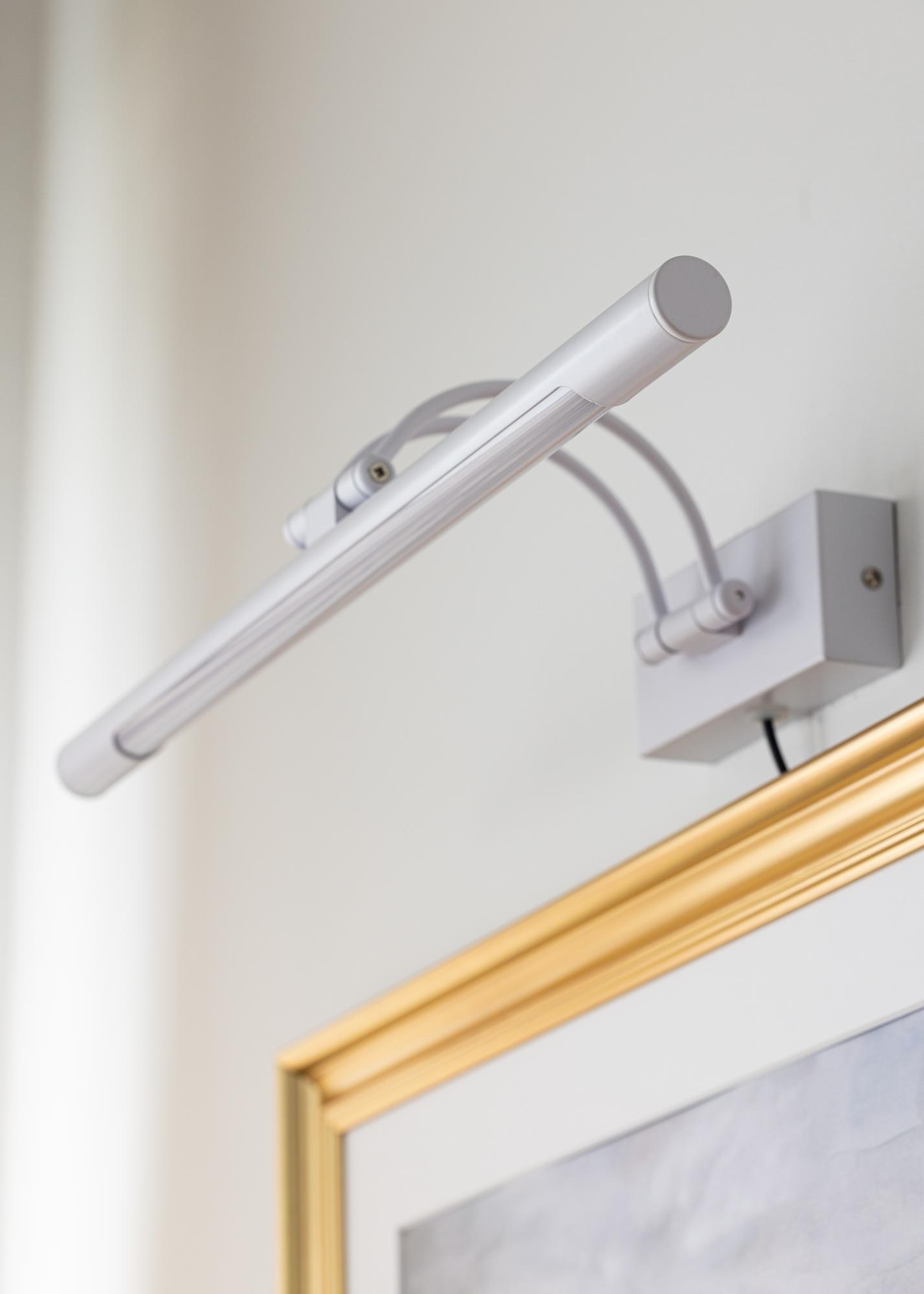 Balta apdaila leidžia apšvietimui lengvai integruotis tiek į modernią, tiek į klasikinę aplinką. Diskretiška išvaizda ir reguliuojamas šviesos lygis padaro šį paveikslų apšvietimą puikiu priedu norint išryškinti savo meno kūrinius rafinuotu būdu. Su paprastu montavimu ir įvairiapusišku dizainu, ši apšvietimas yra puikus pasirinkimas suteikti jūsų namams elegantišką ir svetingą įspūdį.