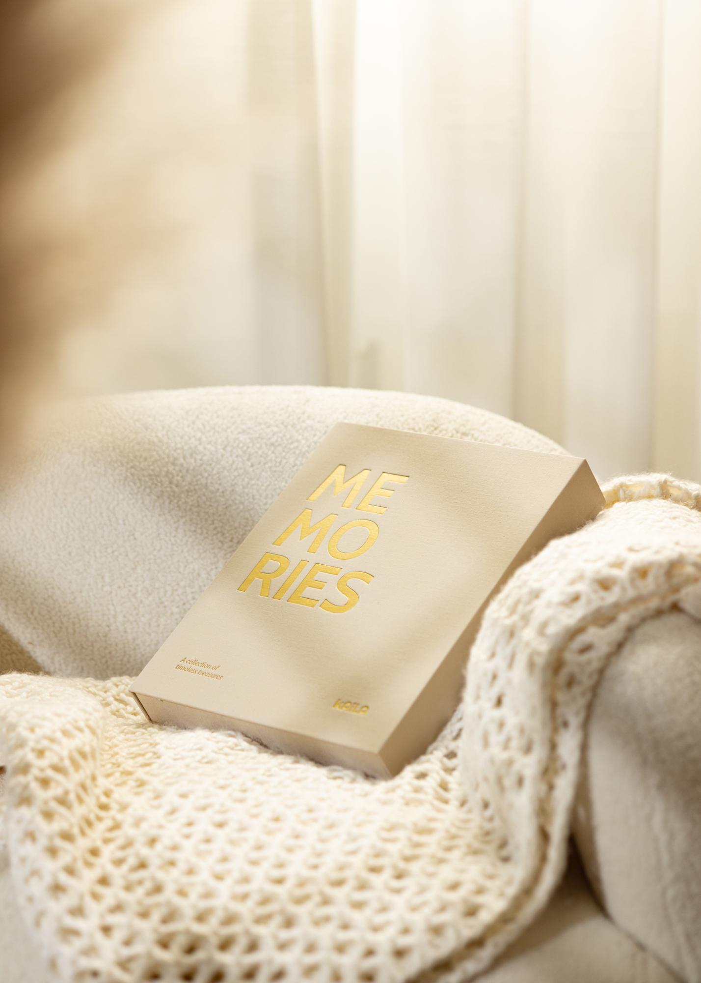 Albumas elegantiškai apvilktas kreminės spalvos tekstile, o ant jo viršelio ir nugarėlės yra aukso spalvos užrašas „MEMORIES“. Albume taip pat yra papildomas pavadinimas „A collection of timeless treasures“, esantis apatiniame kairiajame kampe.
