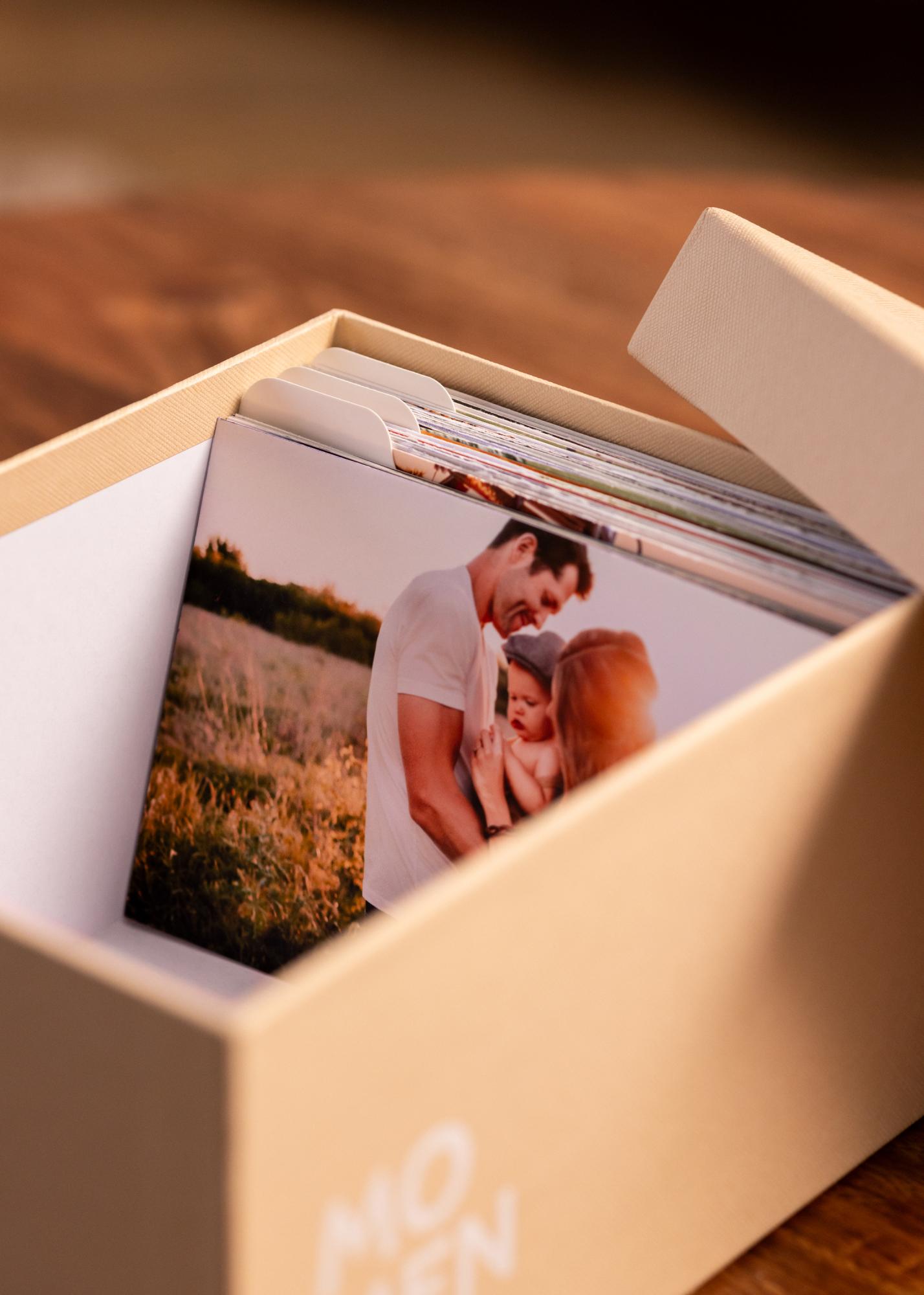 KAILA Memories Foto dėžutė yra elegantiška ir funkcionali dėžutė, talpinanti iki 700 nuotraukų, kurių dydis 10x15 cm. Kreminės spalvos dizainas suteikia švelnų ir stilingą pojūtį, kuris tinka daugelyje namų. Puikiai tinka jūsų mėgstamų prisiminimų organizavimui ir išsaugojimui gražiu bei praktišku būdu.