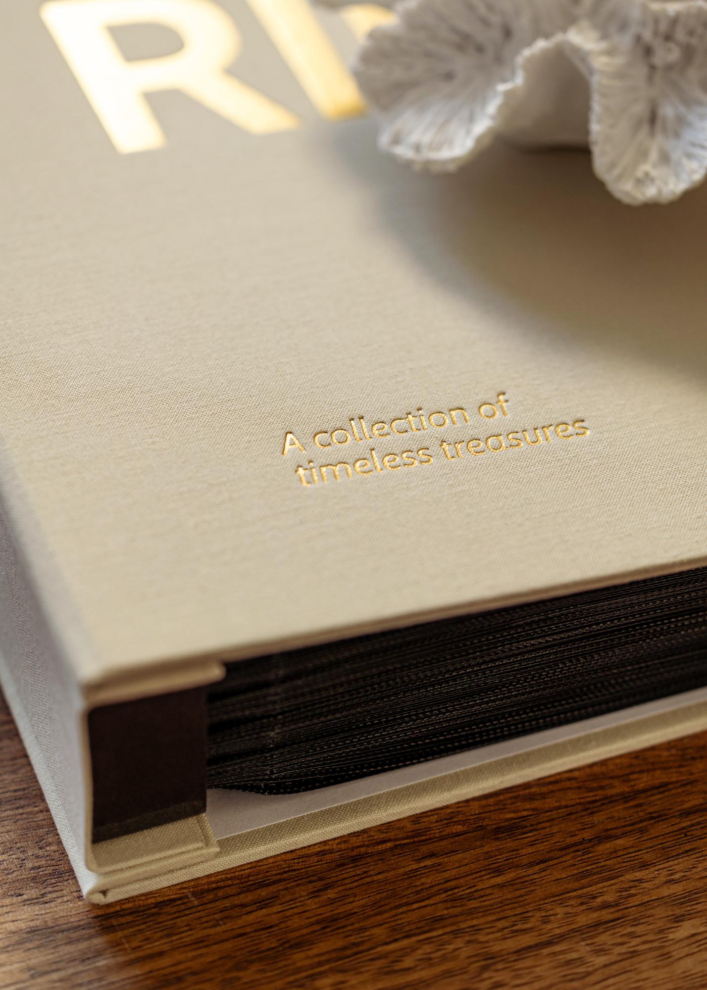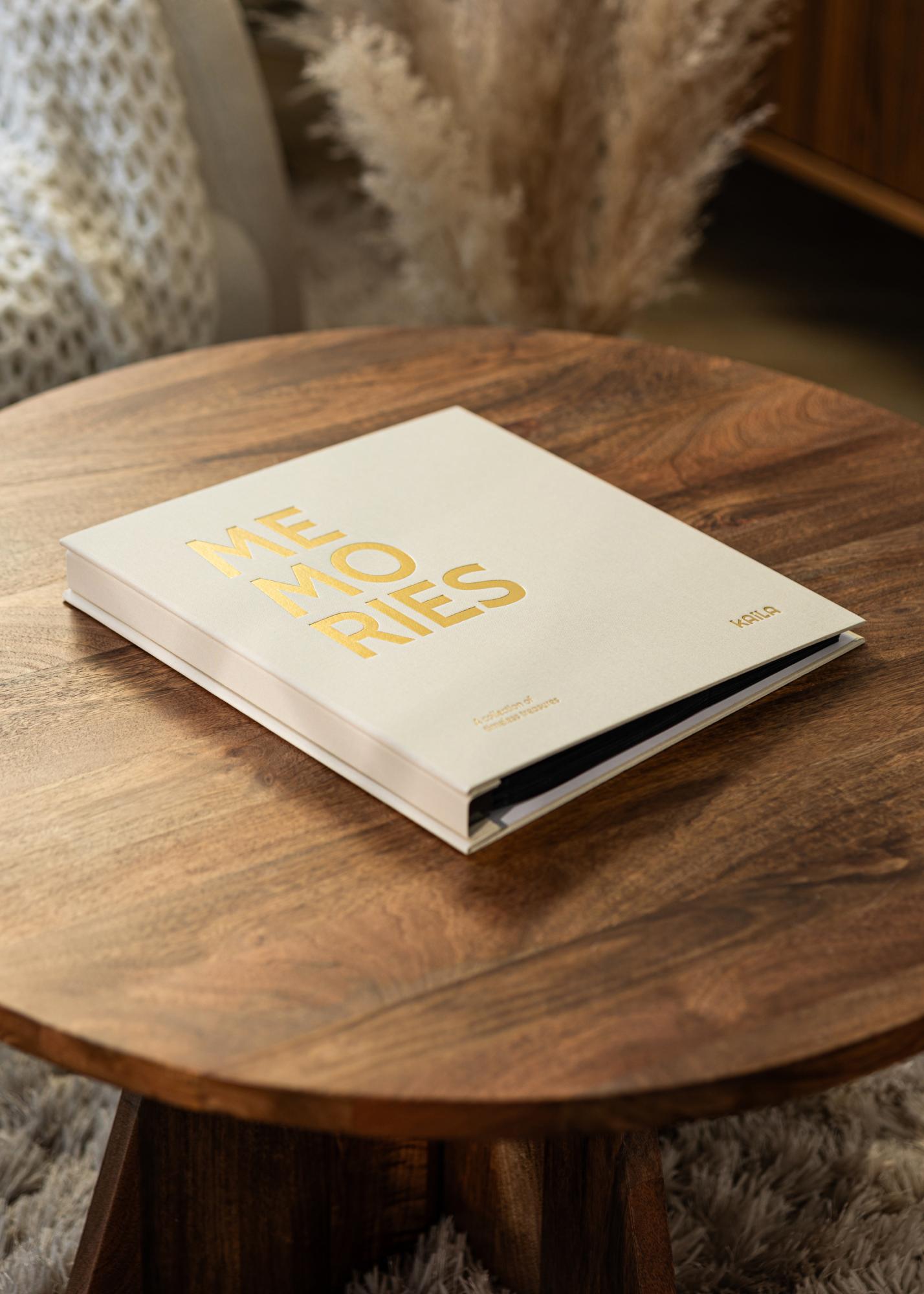Tai elegantiškas nuotraukų albumas su laikui nepavaldžiu dizainu ir praktiškomis nuotraukų kišenėmis – puikiai tinka tiems, kurie nori išsaugoti savo geriausius prisiminimus apie nuotraukas stilingu ir paprastu būdu. Albumas yra aptrauktas smėline medžiaga, o priekyje puošia užrašas ”MEMORIES” auksinės spalvos spauda. Papildomai atmosferai albumas turi užrašą ”A collection of timeless treasures” viename kampe. Medžiaga aptraukti viršeliai kartu su auksine teksto spalva daro šį nuotraukų albumą prabangią interjero detalę, kurią norėsite palikti matomoje vietoje.