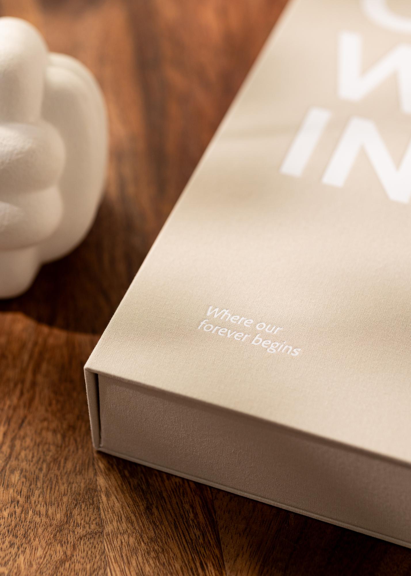 Užfiksuokite ir išsaugokite gražius atsiminimus iš savo didžiosios dienos su KAILA OUR WEDDING Creme - Coffee Table Photo Album. Šis elegantiškas fotoalbumas yra sukurtas būti ne tik albumu; tai stilinga interjero detalė, kurią mielai parodysite savo namuose. Su savo smėlio spalvos viršeliais ir juodais puslapiais jis sukuria rafinuotą kontrastą, kuris geriausiai paryškina jūsų nuotraukas.