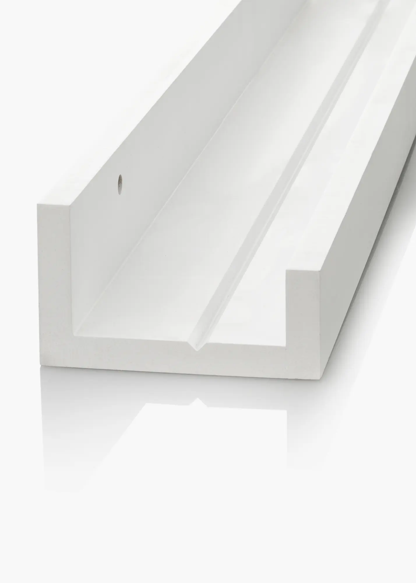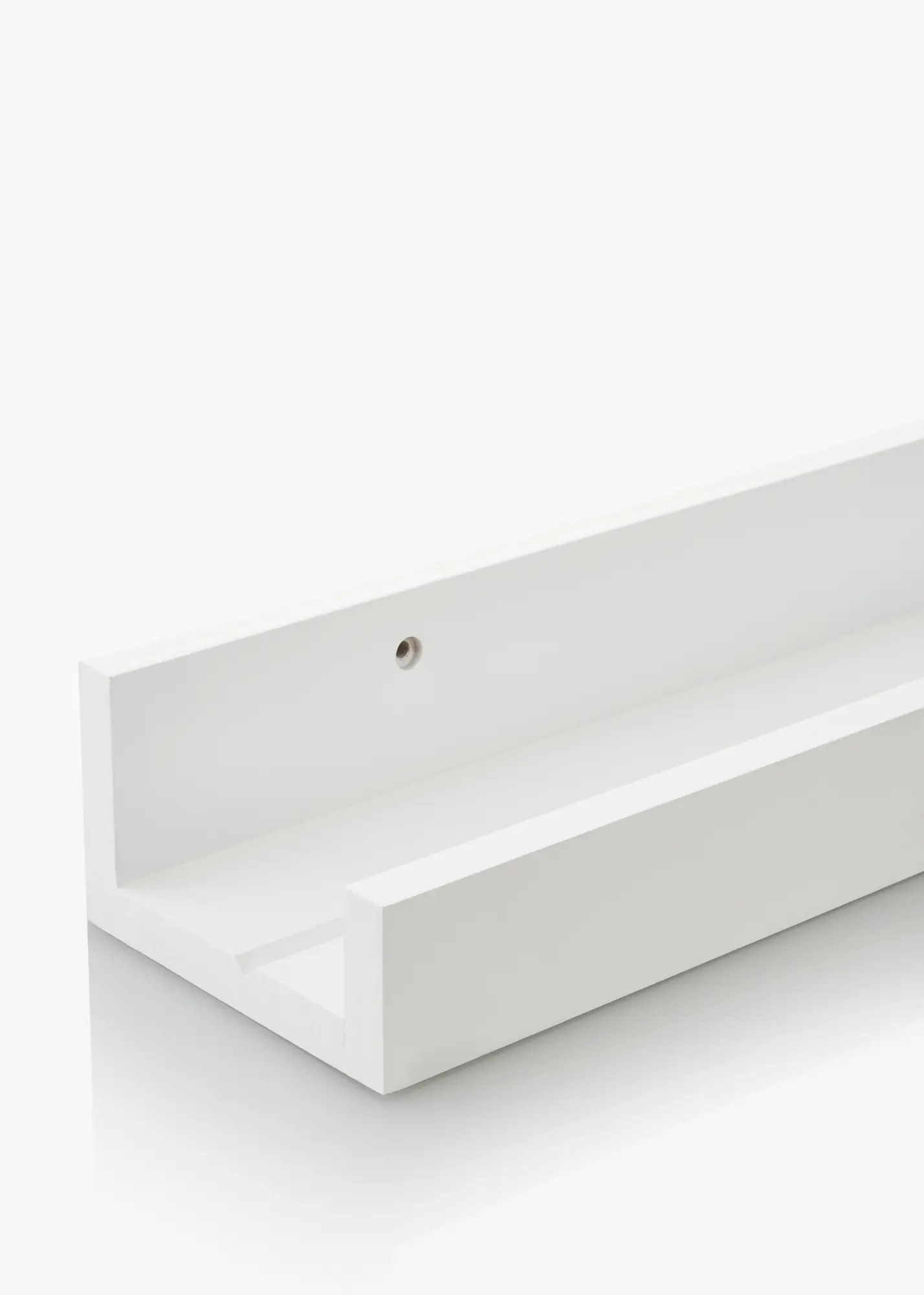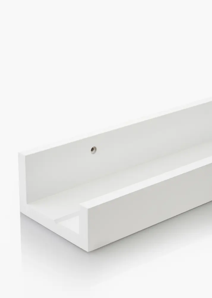 Naudodami praktišką paveikslų lentyną galite lengvai ir stilingai parodyti ir keisti savo paveikslus! Ši elegantiška paveikslų lentyna pagaminta iš MDF ir nudažyta balta spalva su gražia, pusiausiau blizgančia danga. Dizainas yra elegantiškas, su paprastomis, tiesiomis linijomis ir laiko neblėstančia minimalistine atmosfera. Lentynos viduryje eina išpjova, kuri suteikia paramą jūsų paveikslams ir leidžia jiems stovėti puikiame kampu palenkus prie sienos. Paveikslų lentyna taip pat turi išgręžtas skyles, o pakuotėje pridedami tinkami varžtai ir kaiščiai, kad būtų dar lengviau!