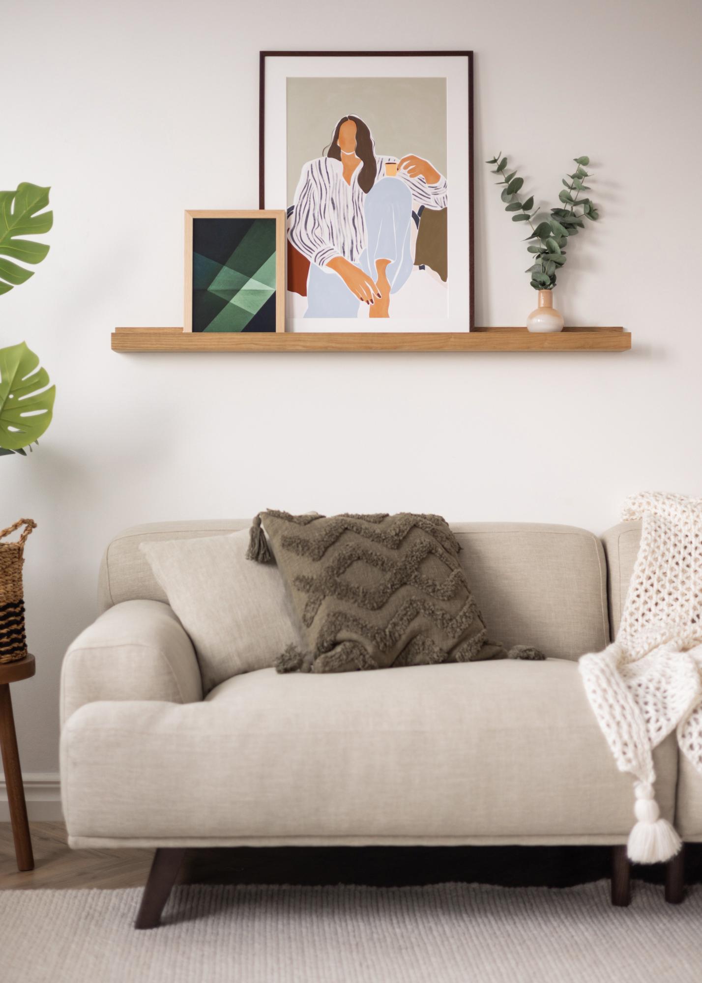Su praktiška paveikslų lentyna galite elegantiškai demonstruoti savo paveikslus ir taip pat suteikti galimybę įvairinti savo sienų meną. Ši paveikslų lentyna yra pagaminta iš tvirto ąžuolo, turinti stilingą dizainą su paprastomis, tiesiomis linijomis. Pati lentyna turi išfrezuotą griovelį, suteikiantį atramą jūsų paveikslams ir padedantį jiems įsigauti gražų kampą, kai jie remiasi į sieną. Paveikslų lentynos yra įvairių ilgių, ir šis variantas yra 130 cm ilgio. Lentyna taip pat turi priešgręžtas skyles, ir kad būtų dar paprasčiau, pritvirtinami tinkami varžtai ir kaiščiai.