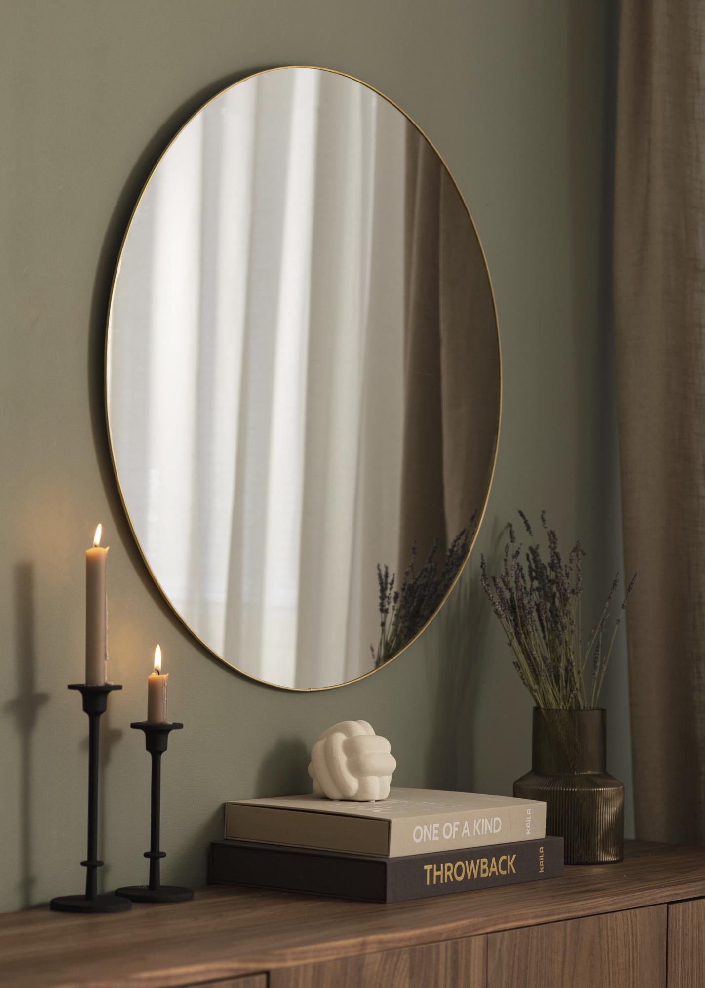 KAILA Thin Brass yra apvali ir labai dekoratyvi veidrodis, kuri gali sukurti erdvumą ir suteikti jaukumo beveik bet kuriam kambariui. Žalvario spalvos rėmas yra labai plonas, kas suteikia veidrodžiui elegantišką išvaizdą. Veidrodis gali kabėti vienas ant sienos arba kartu su kitomis gražiomis interjero detalėmis. Veidrodis turi tvirtinimus prie sienos.