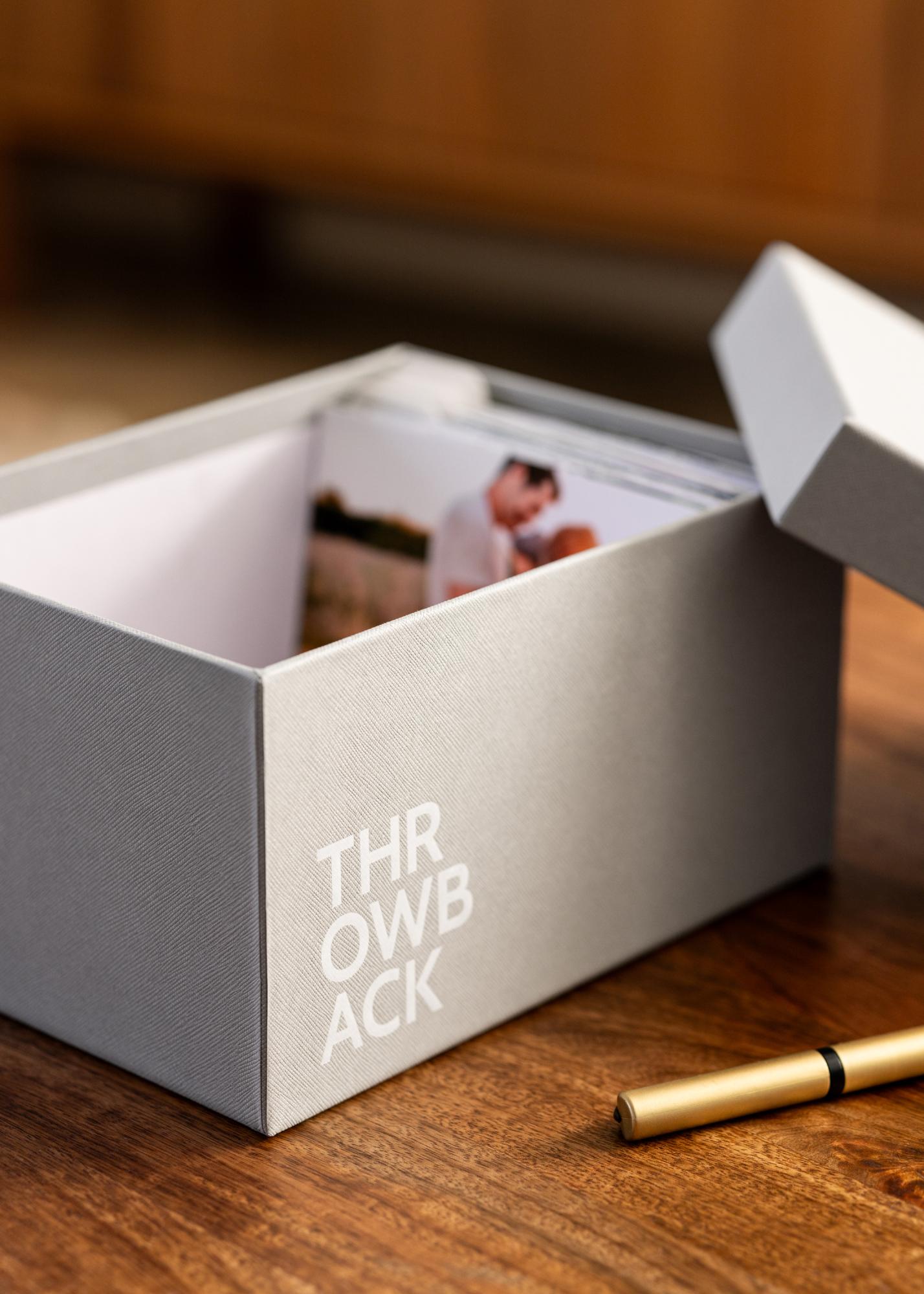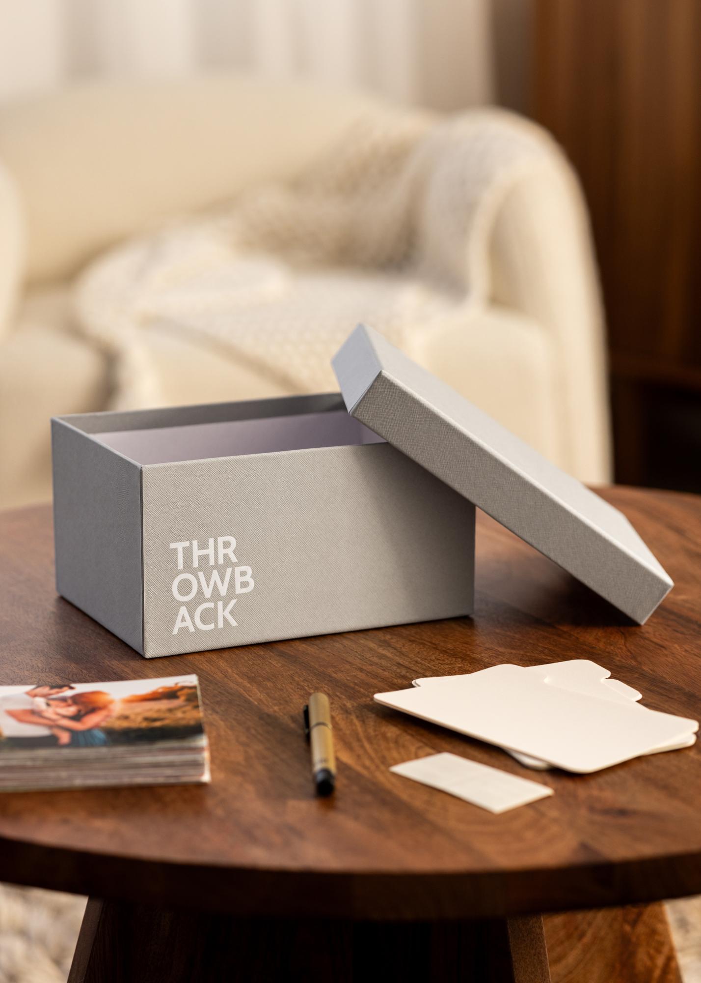 KAILA Throwback Foto Dėžutė yra stilinga ir praktiška nuotraukų dėžutė elegantiškos pilkos spalvos. Ji talpina iki 700 nuotraukų, dydžiu 10x15 cm, ir yra puiki priemonė organizuoti ir išsaugoti jūsų mėgstamus prisiminimus. Dekoratyvus ir funkcionalus sprendimas tiems, kurie nori turėti savo nuotraukas surinktas gražiu būdu.