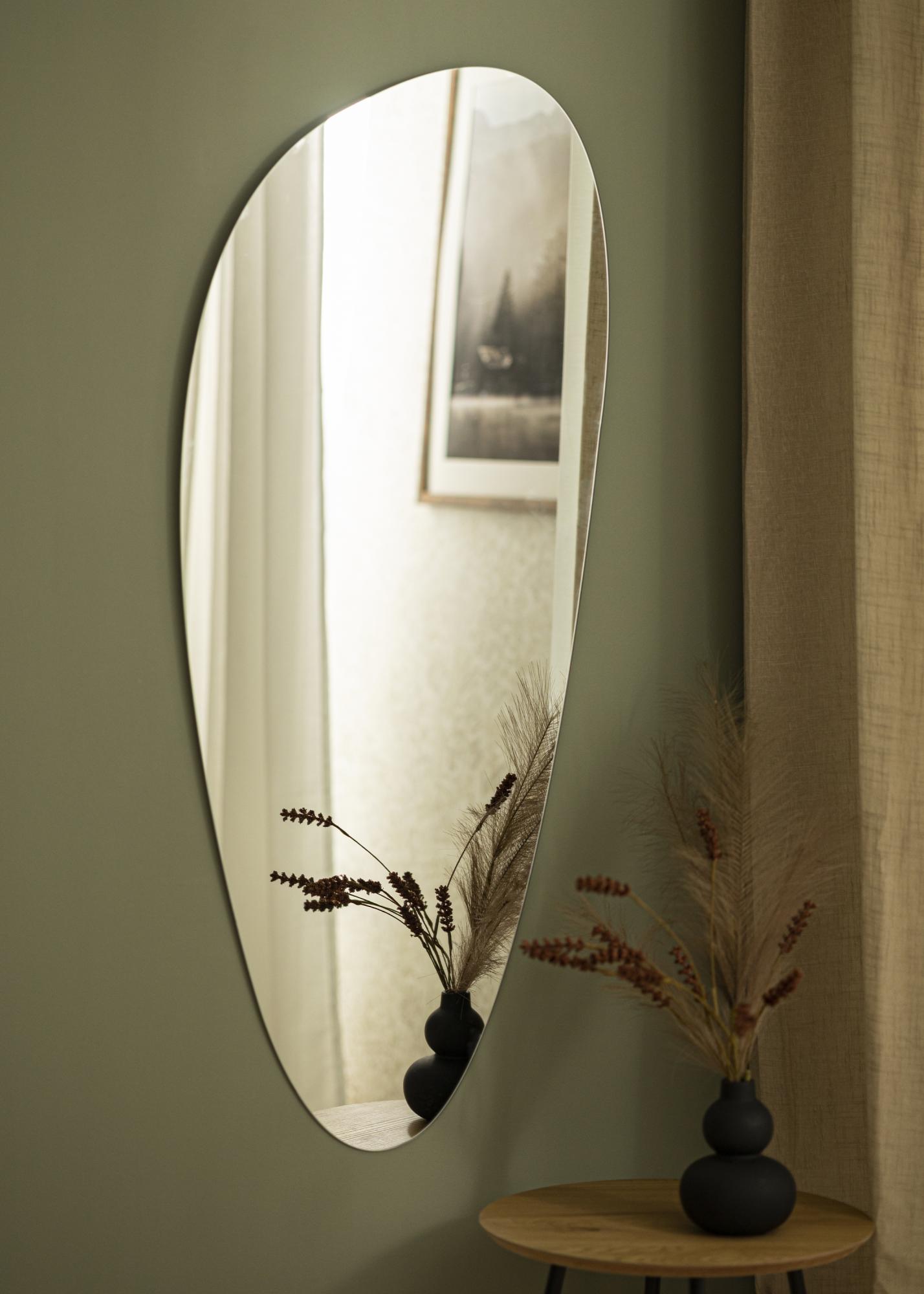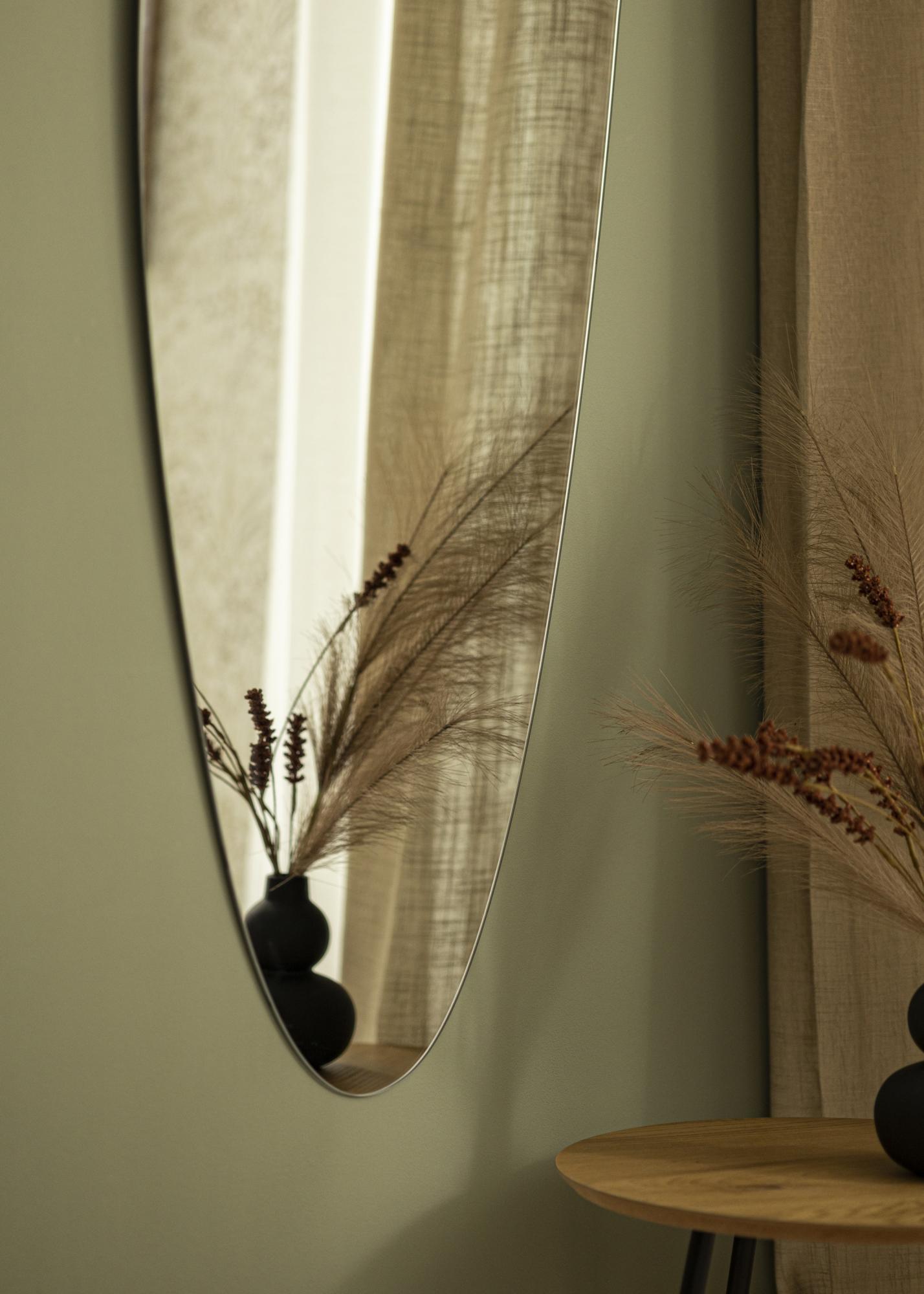 Šis sieninis veidrodis yra minimalizmas geriausiu pavidalu – su dizainu be rėmų ir asimetriška, pailga forma. Veidrodžio stiklo plonumas, tik 4 mm, dar labiau sustiprina stilingą minimalistinį pojūtį.