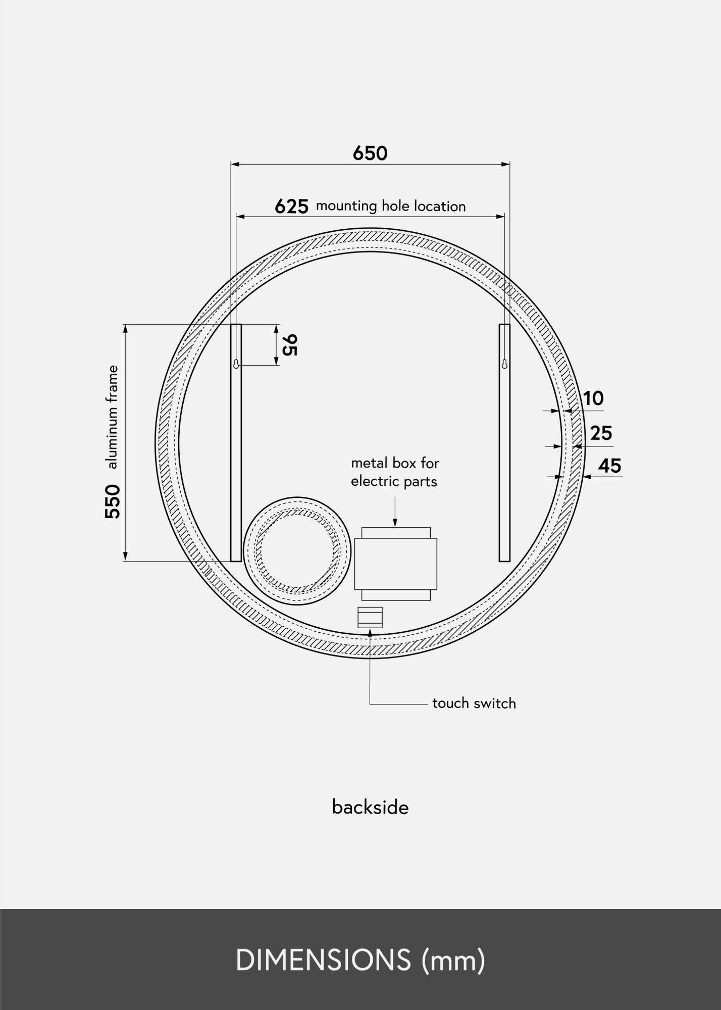 Šis veidrodis turi madingą minimalistinę išvaizdą be rėmo, todėl jis puikiai atrodo tiek vonios kambaryje, tiek hole. Veidrodis skirtas nuolatiniam montavimui ir prijungiamas prie jungiklio. Kad veidrodis veiktų tinkamai, jis turėtų būti prijungtas prie įprasto jungiklio, o ne pritemdytuvo.