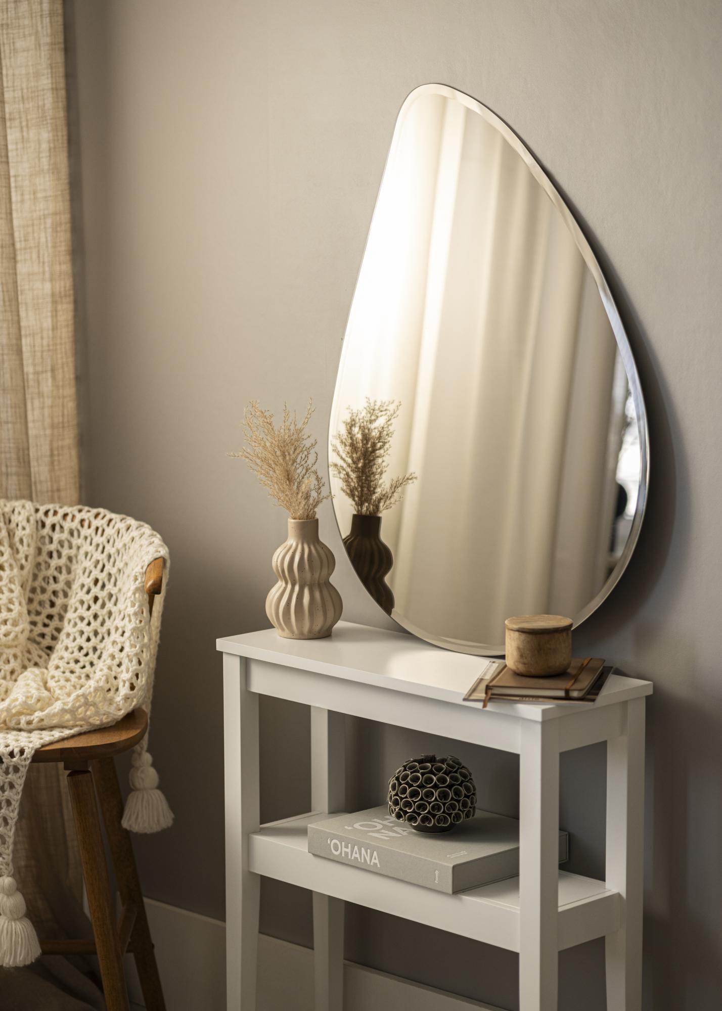 Tai madingas lašo formos veidrodis su dar madingesniu veidrodiniu stiklu, tamsaus bronzos atspalvio. Tamsintas veidrodinis stiklas sukuria didelį efektą, o graži bronzinė spalva lengvai derinasi su įvairiausiais interjero spalvų schemomis. Veidrodis yra labai plonas ir neturi rėmo, o kartu su prabangiai facetine briauna, jis dar labiau sustiprina elegantišką ir modernią išvaizdą. Tai labai dekoratyvus sieninis veidrodis, kuris tikrai pritrauks dėmesį bet kurioje patalpoje – tiek svetainėje, tiek prieškambaryje ar miegamajame.