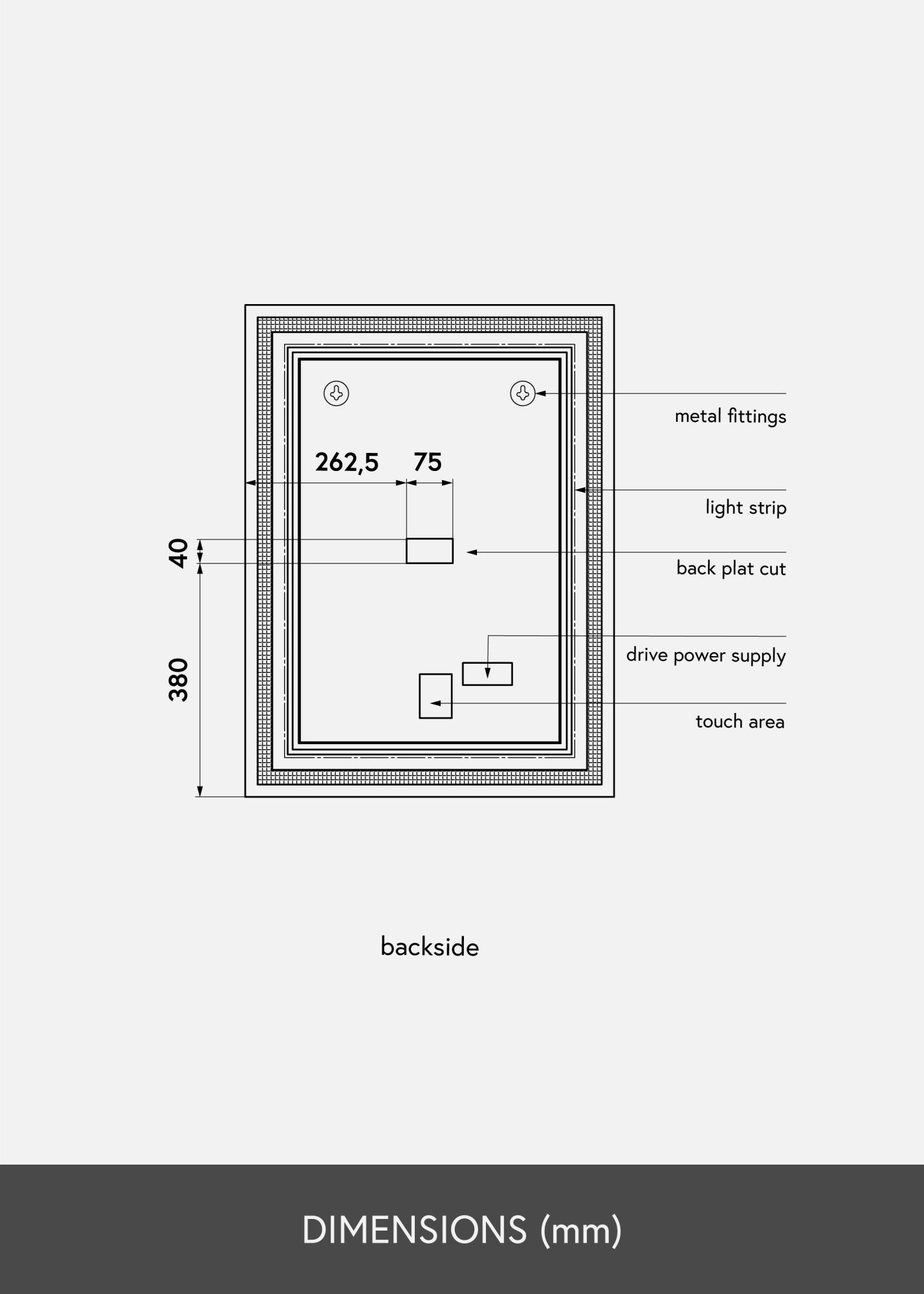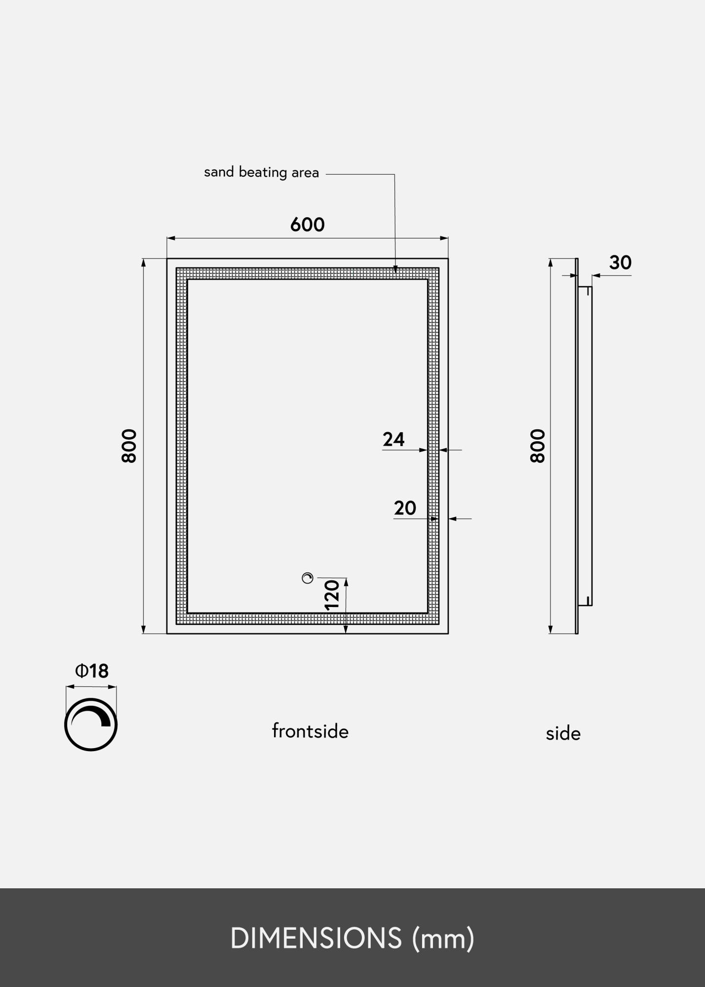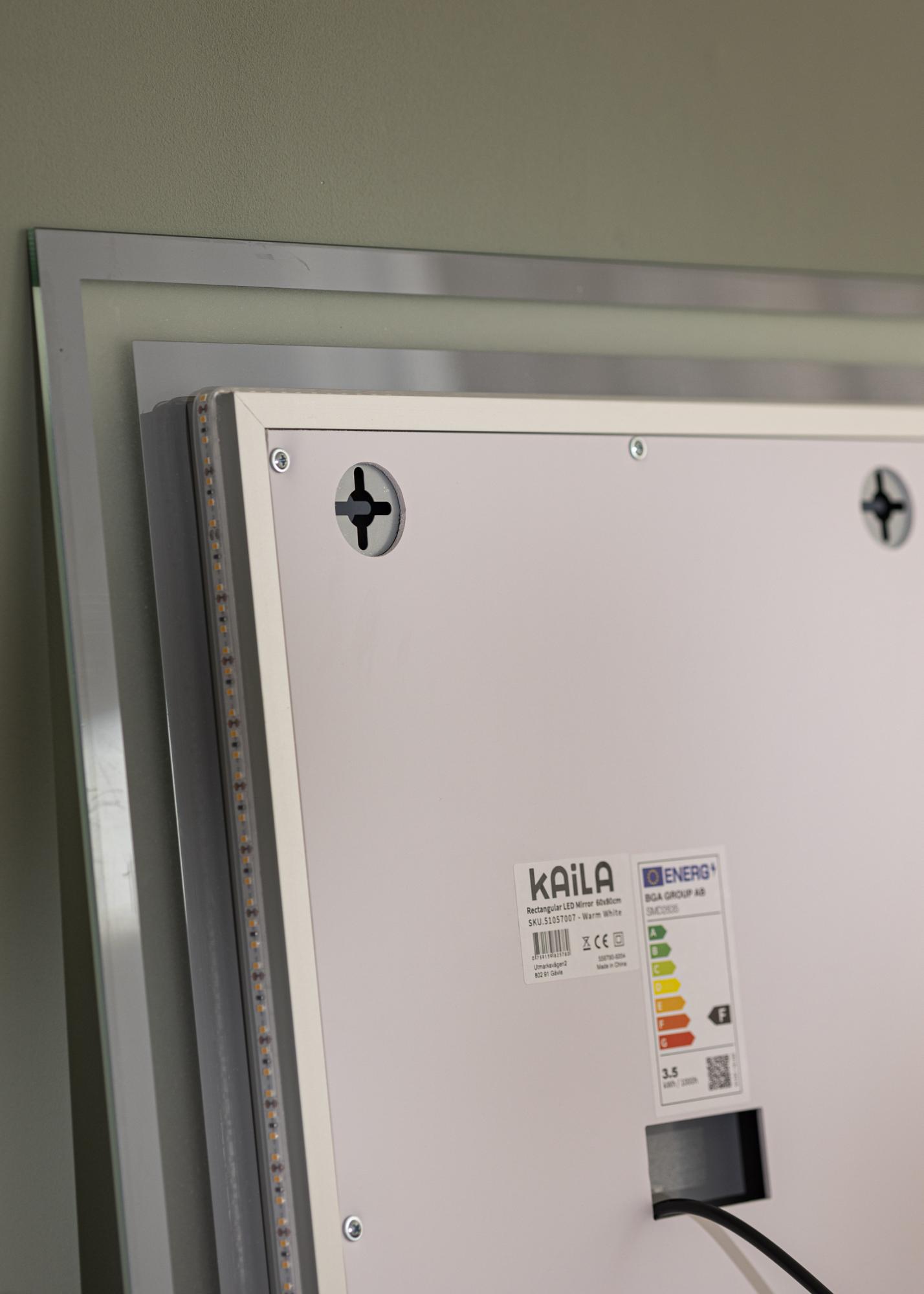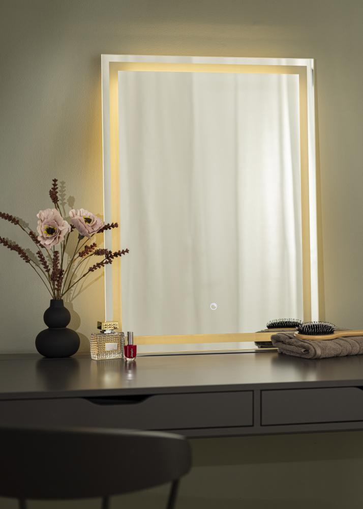 Jeigu ieškote modernaus ir minimalistinio veidrodžio su apšvietimu, tai yra veidrodis jums. Jis aprūpintas energiją taupančiomis LED lempomis, kurios suteikia vienodą šviesą, idealią makiažui atlikti arba tiesiog atspindžiui dienos metu. Apšvietimas yra veidrodžio užpakalinėje pusėje, bet šviečia kaip elegantiška rėmelis ant priekinės veidrodžio pusės. Norėdami reguliuoti šviesos intensyvumą, laikykite veidrodžio apačioje esantį jutiklinį mygtuką kelias sekundes.
