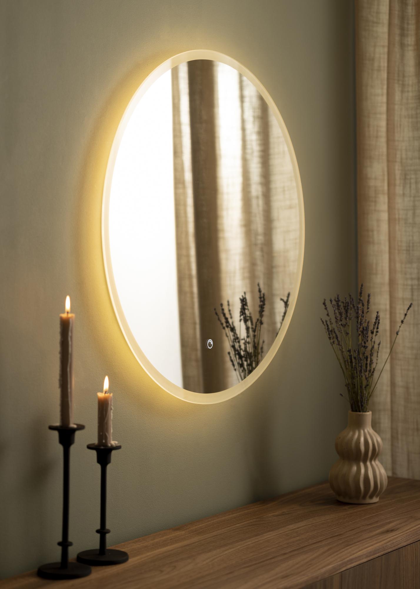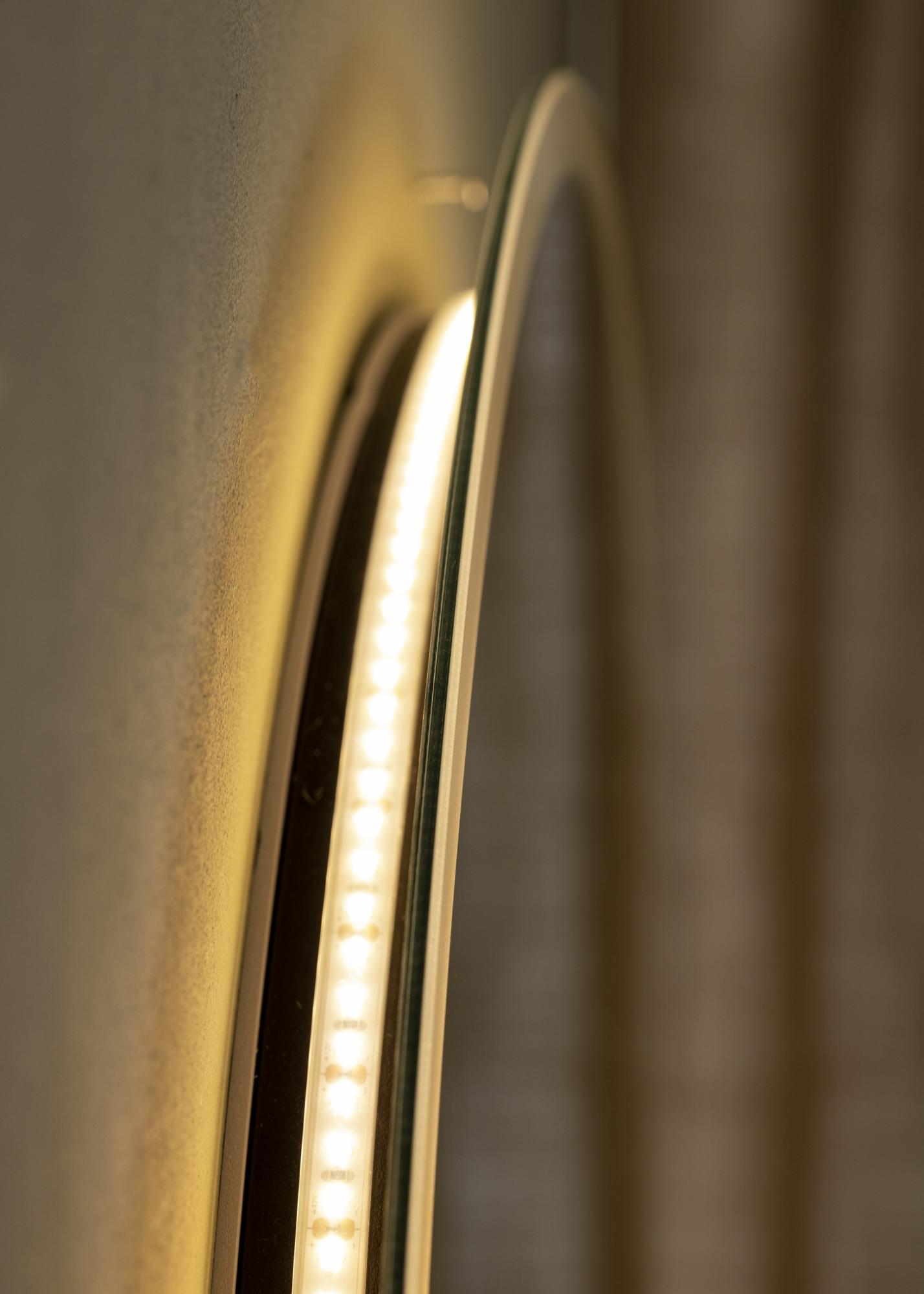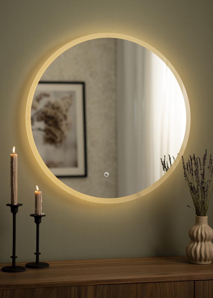 Tai yra klasikinis ir stilingas apvalus vonios veidrodis. Veidrodį rėmina matinė kraštinė su integruotu LED apšvietimu. Apšvietimas įsijungia už veidrodžio ir suteikia malonią šiltai baltą šviesą 3000K į priekį. Apšvietimas yra reguliuojamas, ir jūs galite lengvai reguliuoti apšvietimo stiprumą, palaikydami mygtuką keletą sekundžių. Kitą kartą įjungus apšvietimą, veidrodis prisimins, kokia buvo nustatyta šviesos stiprumas. Veidrodis turi pritvirtinamus sieninius laikiklius ir yra patvirtintas naudoti vonioje. Vonios veidrodis skirtas nuolatiniam montavimui ir yra prijungiamas prie jungiklio.