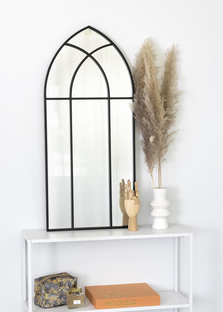 Tai yra labai dekoratyvus veidrodis, kuris iš karto sukuria romantiškesnę atmosferą kambaryje, kuriame jis yra! Veidrodis turi dizainą, primenantį sodo langą ir kartu šiek tiek gotikos charakterį. Veidrodžio įdomi forma padarys jį jūsų namų akcentu! Veidrodis matuoja 45x100 ir turi dekoratyvų raštą iš plonų juodų metalo linijų.