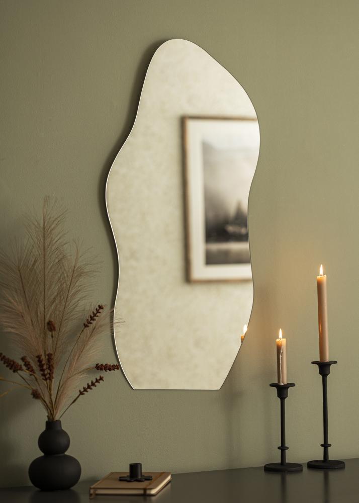 Tai sieninis veidrodis, turintis madingą dizainą, su švelniai banguotais kraštais. Apatinė dalis yra tiesi, todėl veidrodis tampa itin elegantiškas, kabinamas virš baldo, kur veidrodžio apatinis kraštas tampa lygiagrečia linija su komodos arba šoninio stalelio viršutine dalimi. Veidrodis turi sieninius laikiklius nugaroje ir montuojamas ant sienos vertikalioje padėtyje.