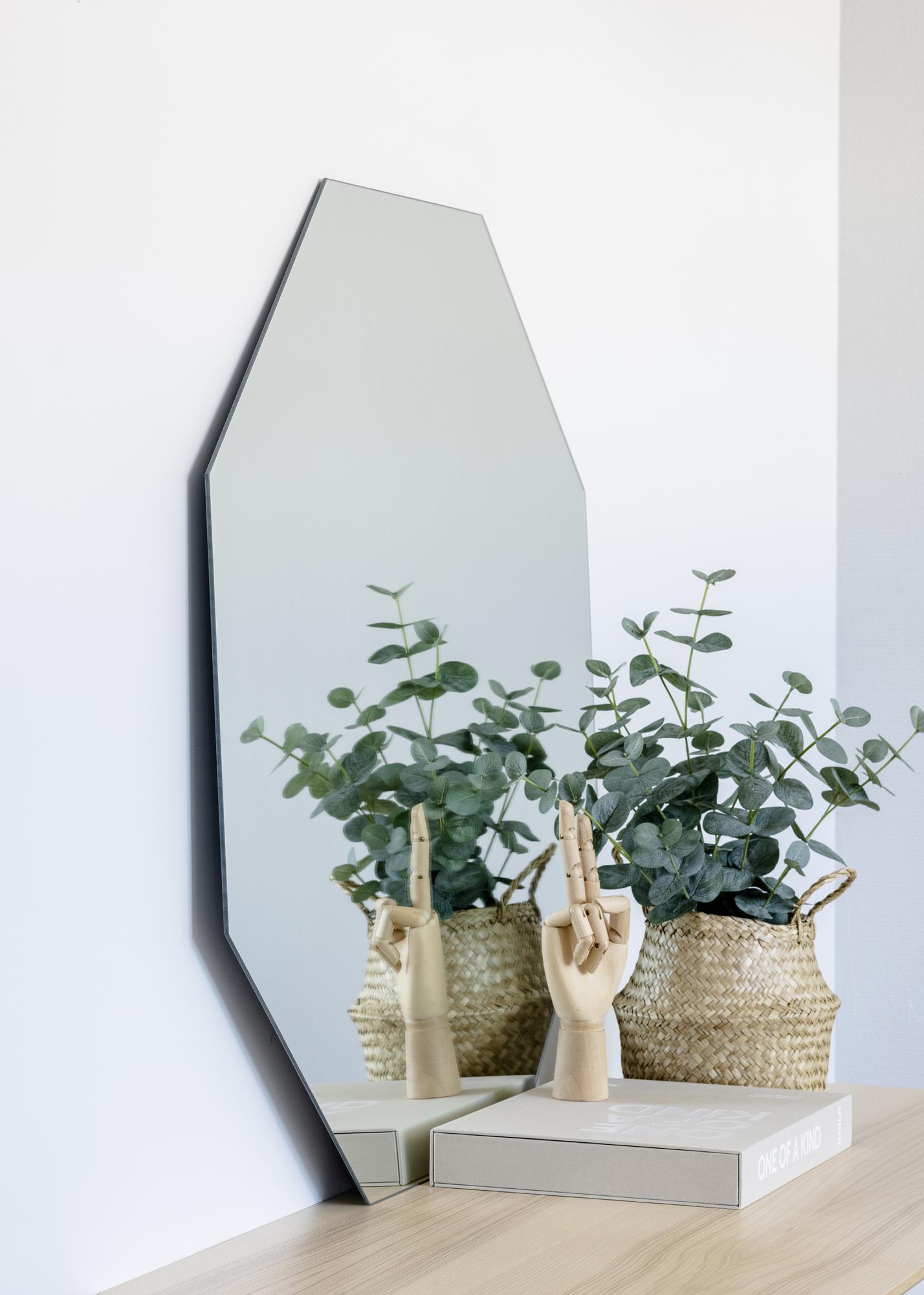 Šis stilingas veidrodis iš KAILA yra puikus pasirinkimas svetainei, koridoriui ar miegamajam. Aštuonkampė forma be rėmo suteikia tobulą balansą tarp minimalizmo ir žavesio. Dekoruojant įvairiomis formomis ir medžiagomis, galite sukurti dinamiką namuose, o šis kampuotas veidrodis suteikia puikų kontrastą kitai baldams ir interjero detalėms. Veidrodis turi sieninį laikiklį ir gali būti lengvai pakabinamas ant sienos.