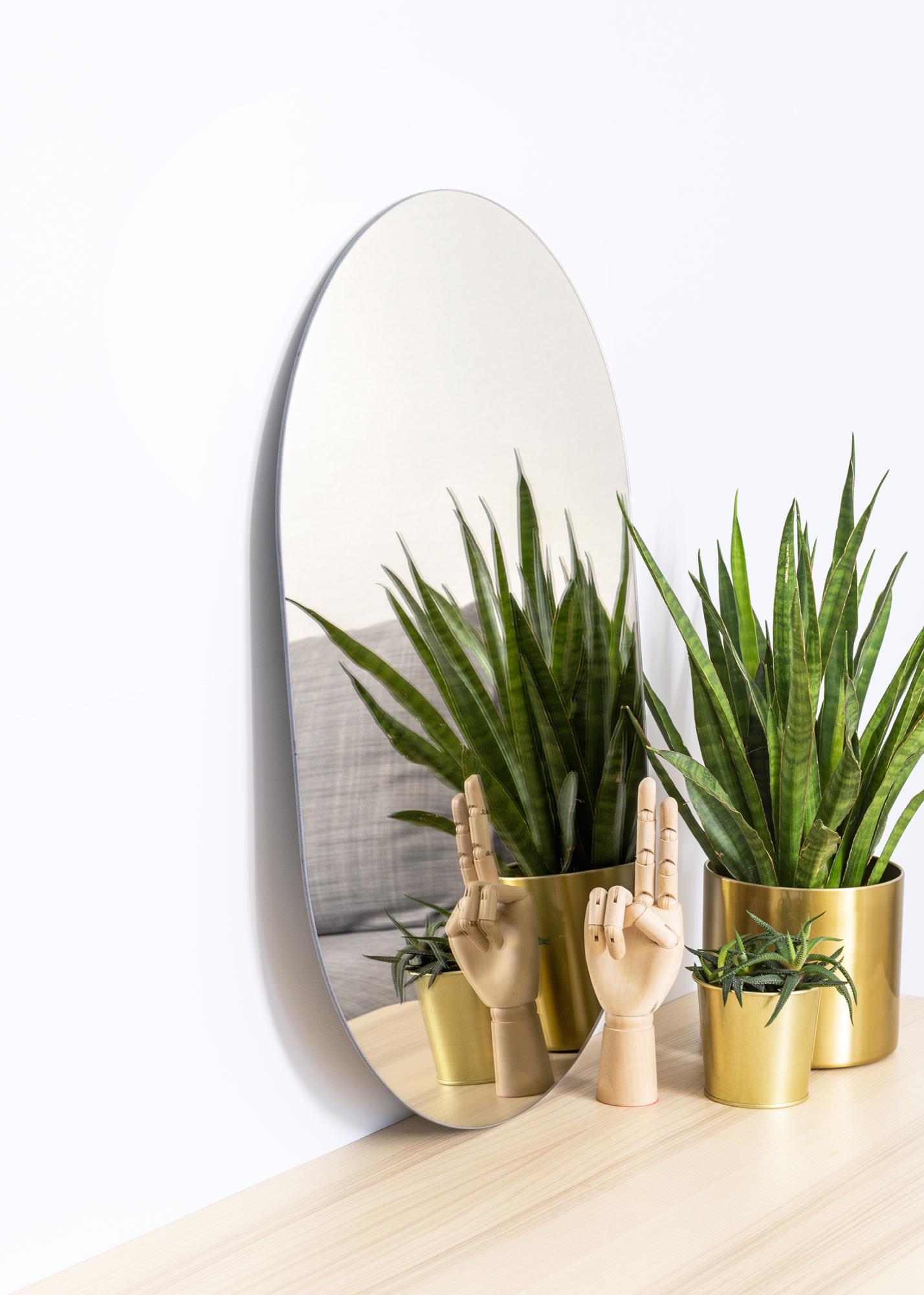 Su ovaliniu veidrodžiu kaip šis, sukursite švelnią ir jaukią atmosferą savo namuose. Šis veidrodis yra tik 4 mm plonas, o tai kartu su švelnia forma sukuria labai elegantišką sieninį veidrodį. Tai veidrodis su dizainu, kuris yra tiek modernus, tiek nesenstantis, todėl puikiai tinka ir madingiems, ir klasikiniams interjerams.